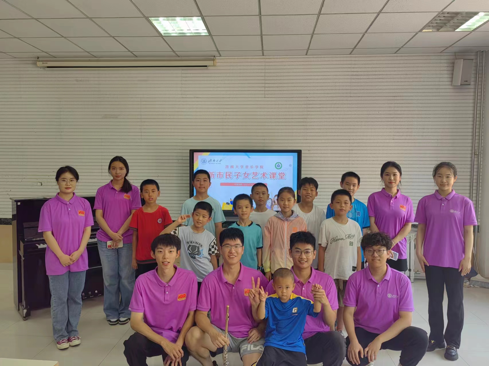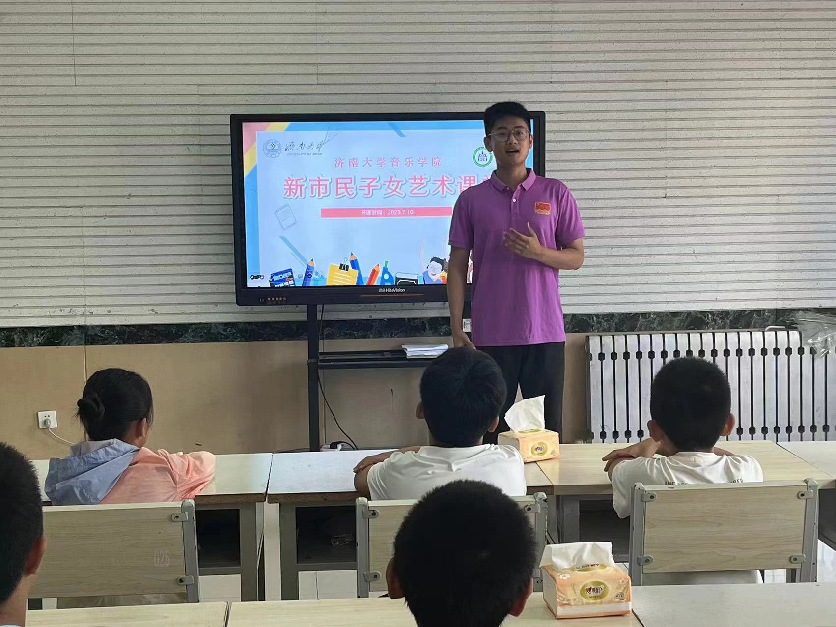 “新市民艺术课堂”作为我院志愿服务的专项活动,自成立以来备受认可和好评,曾入围第一届山东省志愿服务示范项目、获得“出彩型青年志愿服务集体”称号等。活动积极贯彻美育理念,利用我院良好的教学场所和优质的教学设施,开展小剧目排演,合唱排练,器乐指导等,充分发挥队员专长,丰富新市民子女的暑期生活,促进他们更好地成长。