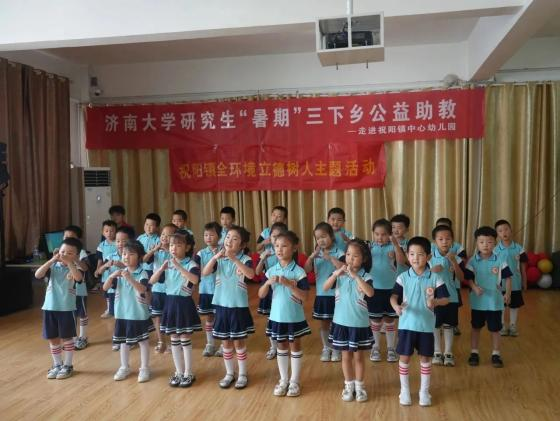 夏日骄阳拦不住青春的热忱,孩子们的笑容如同夏日凉爽的冰棍,将心灵沁的清清凉凉。志愿服务队在与祝阳镇镇政府进行对接之后,来到祝阳镇中心幼儿园,根据园长介绍,同时根据小朋友们的实际情况,志愿服务队制定了适合小朋友们的上课计划。经过与班主任的沟通和学习后,志愿服务队以“课程即游戏”的方式开设了基本乐理、合唱、器乐赏析舞蹈等课程。随着与小朋友们的深入交流与接触,我们不断改进,为小朋友们提供一个有特色、好吸收的趣味课堂,助力幼儿园一班一“特色”,一区一“探索”计划,将乡村文化振兴融入到行动中,不断为美好乡村建设与振兴添砖加瓦。