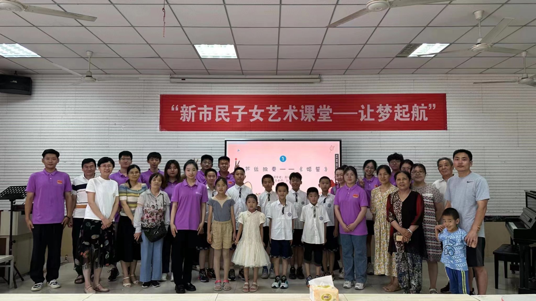 实践团的第一课以新市民小分队的教师专业展示音乐会的形式开始。项目组成员坚持艺术本真,展示了声乐、竹笛、长笛、钢琴、舞蹈等技能,用自己精湛的技艺和深厚的音乐素养赢得了学生与家长的阵阵掌声,展现了太阳成集团tyc151cc学子的风采,为教师与家长之间搭建了一个良好的交流学习平台。该活动灵活运用我院提供的良好的教学场所和优质的教学设施,组成了理论组、声乐组、器乐组、钢琴组、舞蹈组,免费开展舞蹈、音乐、钢琴、器乐等艺术教育。其中,理论包括音乐理论知识讲解与鉴赏,舞蹈包括基本功练习与小剧目排演,声乐包括声乐发声教学与合唱教学,器乐包括器乐知识讲解、 器乐指导等课程。充分发挥了队员专长,丰富了新市民子女的暑期生活,促进他们更好地成长。