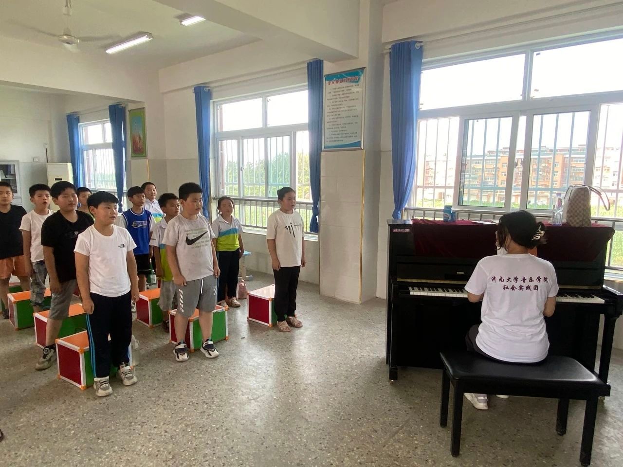 为助力乡村振兴,以美育教育精准帮扶,以实际行动助推“省派第一书记”开展相关工作,聊城志愿服务队走进莘县古城镇,开展社会实践活动。他们深入乡村中小学美育课堂,通过灵活多样的教学方法,向学生们普及舞蹈、声乐、器乐等的基本常识,提供专业的培训辅导,同时举办了以“‘乡’约古城镇,盛夏逐梦行”为主题的汇报演出。此行聊城志愿服务队与被帮扶学校一起,激发学生们的艺术兴趣和创新意识,共同打造多方联动、富有活力的中小学美育新格局,为推动地方基础教育高质量发展作出积极贡献。