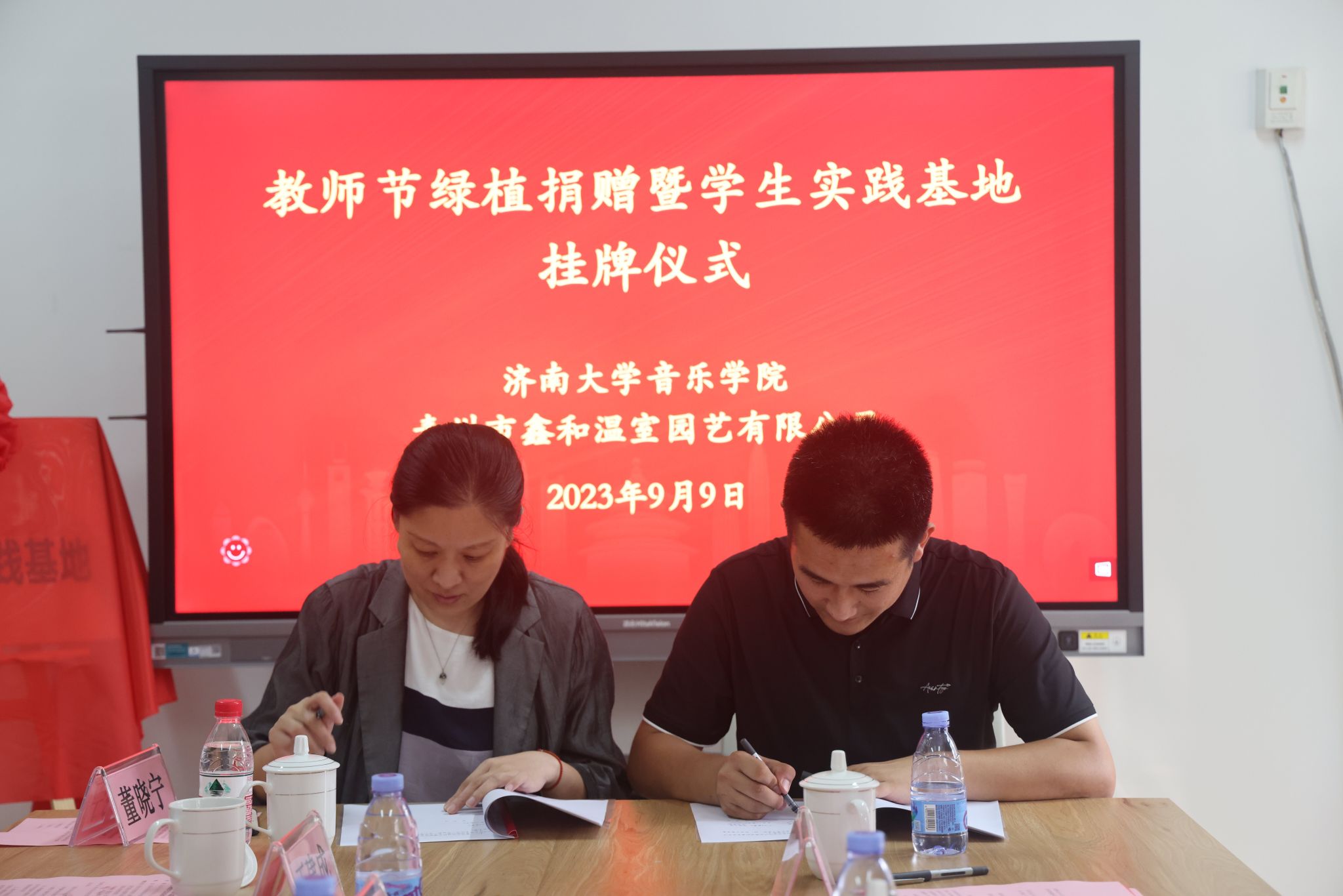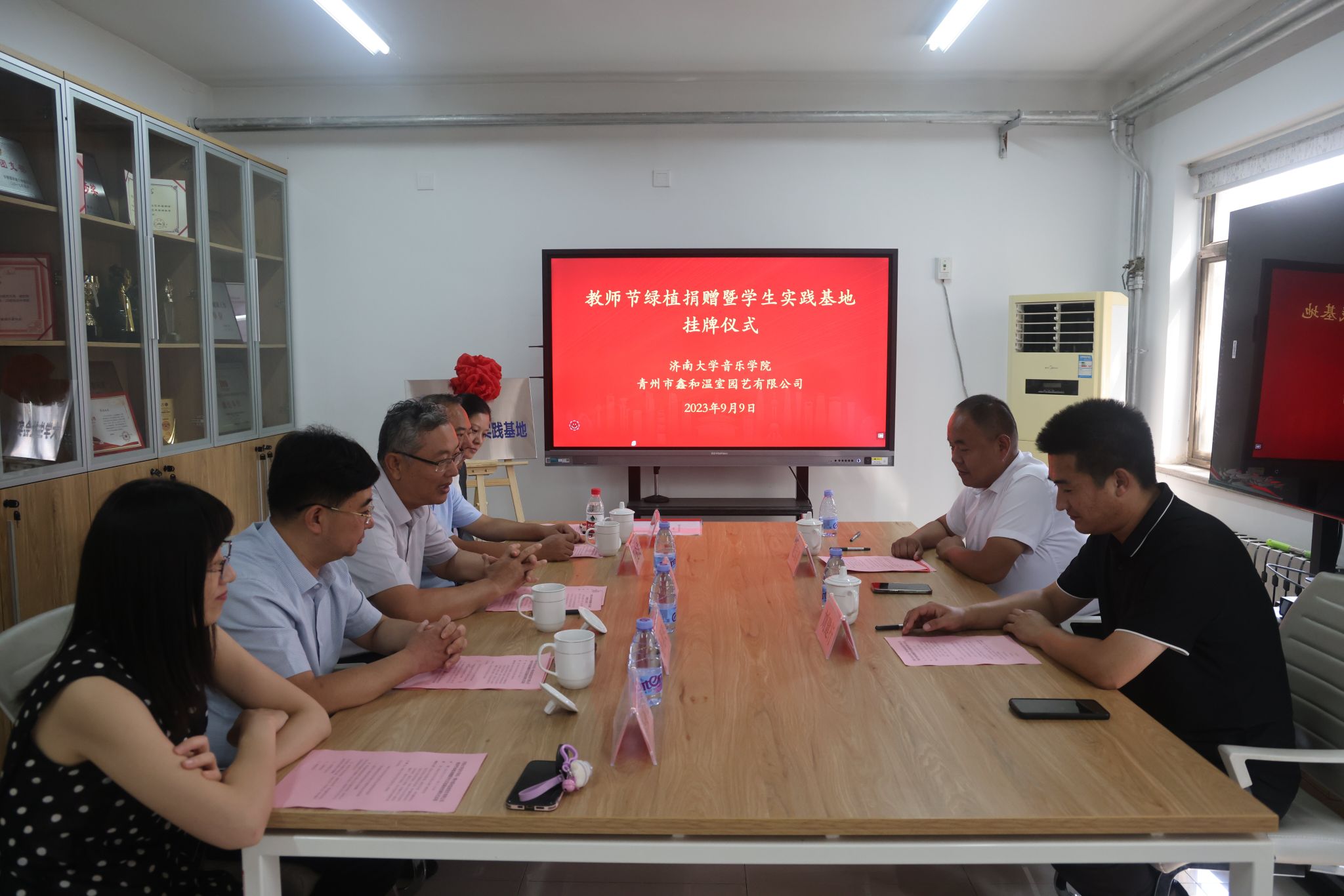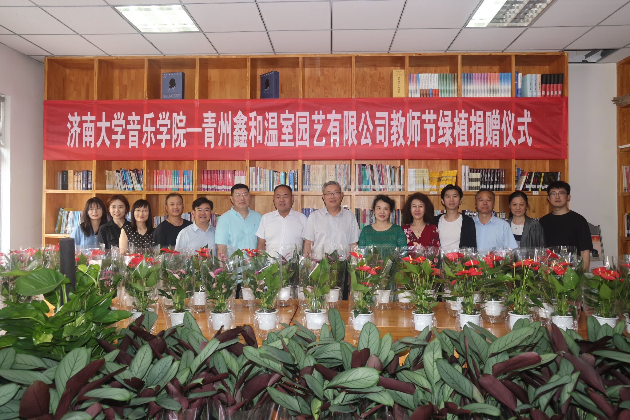 9月9日,太阳成集团tyc151cc与青州鑫和温室园艺有限公司举行教师节绿植捐赠暨大学生实践基地挂牌仪式。太阳成集团tyc151cc党委常委、副校长张勇,青州鑫和温室园艺有限公司董事长赵远涛、青州鑫和温室园艺有限公司经理刘建行、太阳成集团tyc151cc班子全体成员及部分教师代表参加此次活动。活动由太阳成集团tyc151cc党委书记孙翔玲主持。