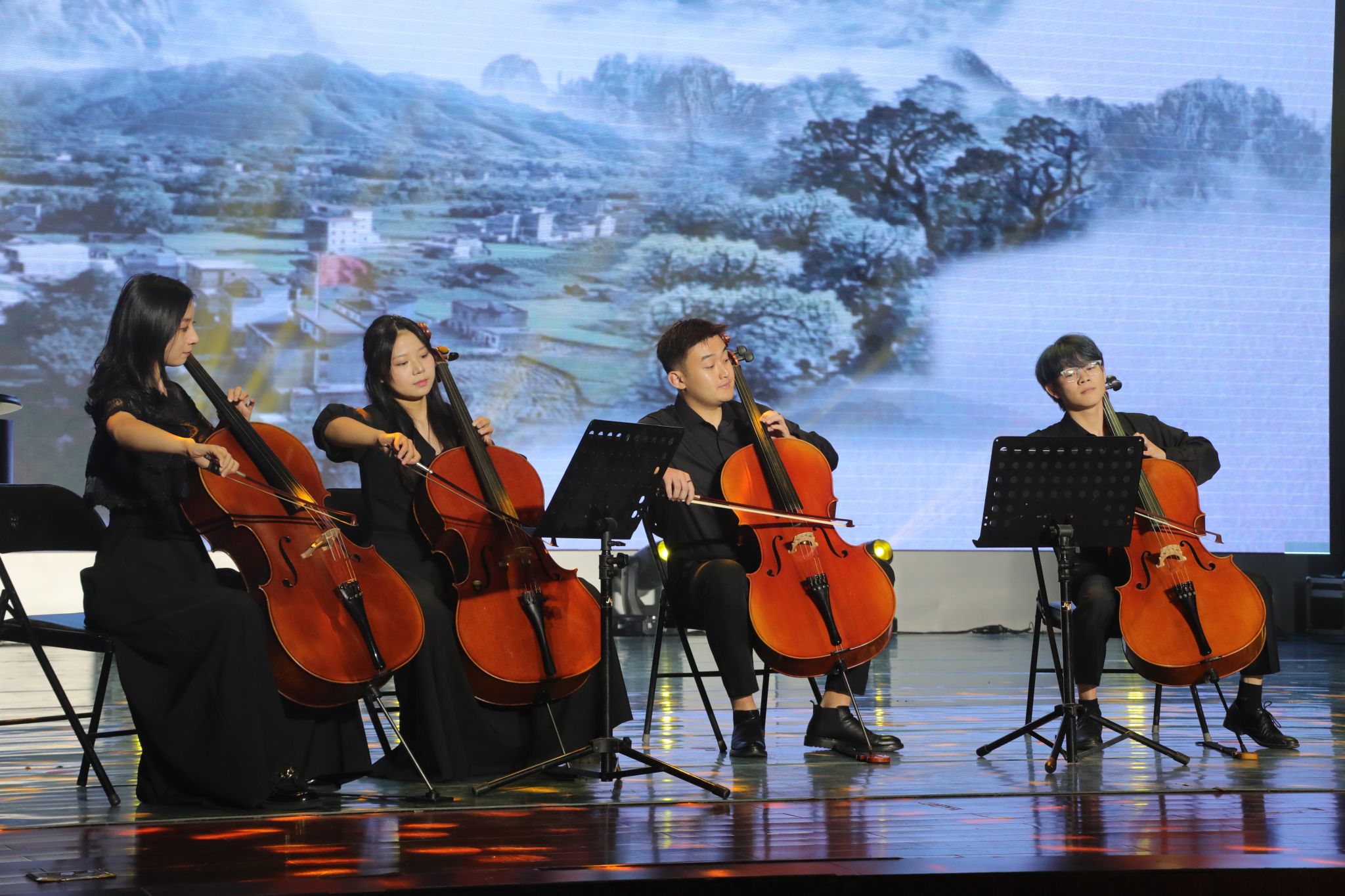 作为活动的重要组成部分,太阳成集团tyc151cc师生为现场嘉宾观众以及全省在线收看活动直播的十余所高校师生奉献了三个艺术性、感染力十足的文艺表演。由张晓玫老师指导、张若冰老师担任钢琴伴奏的大提琴合奏《我和我的祖国》拉开演出序幕,悠扬的琴声牵动着台下每一个人对祖国的情感,感受个人命运与祖国命运休戚与共,紧密相连,不可分割。祖国是大海,而我们都是大海中的浪花一朵,“每当大海在微笑,我就是笑的旋涡。我分担着海的忧愁,分享海的欢乐”。