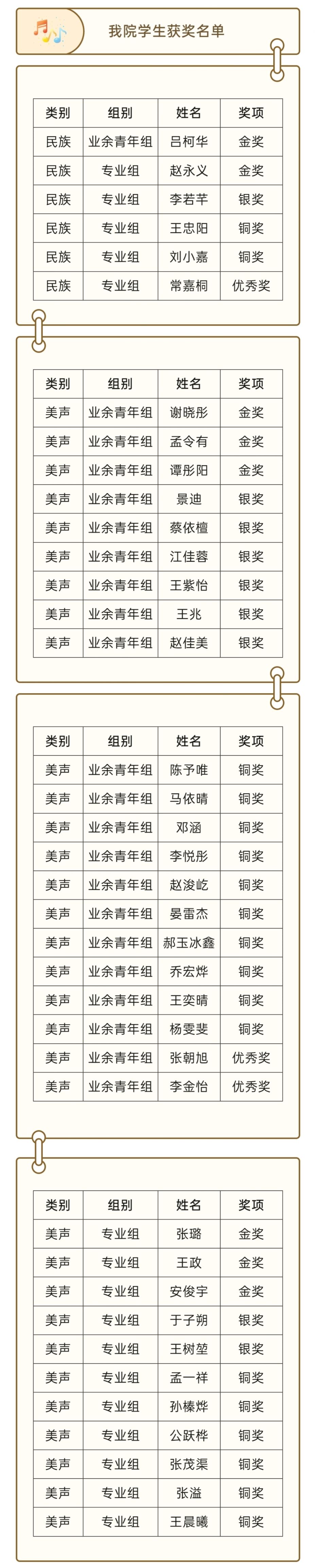 近日,由济南市音乐家协会主办的山东泉城音乐奖(声乐)比赛顺利举行,我院38名同学在此次比赛中取得佳绩。