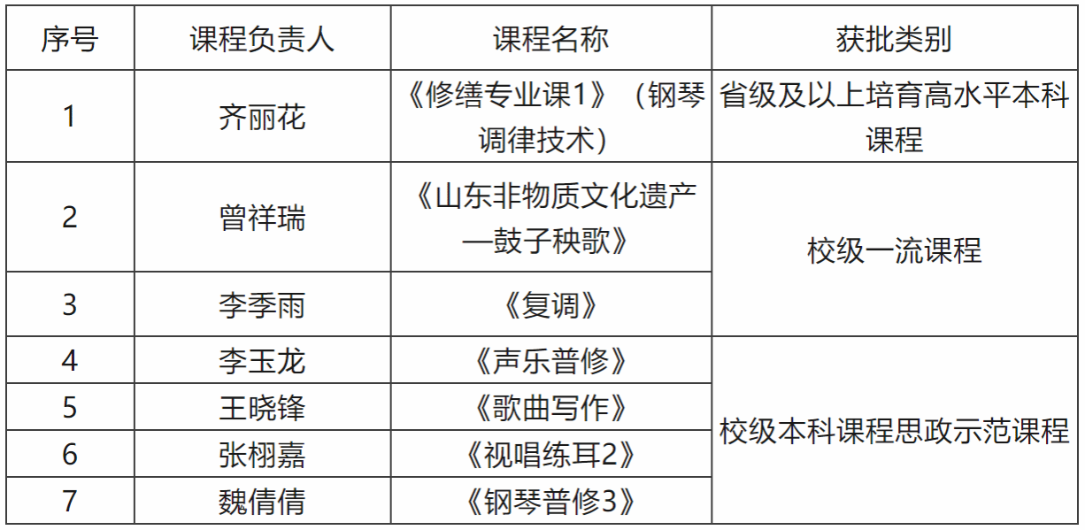 根据《太阳成集团tyc151cc高质量人才培养工程行动方案》(济大校字〔2023〕58号)统一决策部署,为持续提升课程建设质量,参照省级本科一流课程和课程思政示范课程申报要求和条件,近日,学校组织开展了2023年本科课程培育评选工作,我院申报的7门课程中,1门确定为省级及以上培育高水平本科课程,2门确定为校级一流课程,4门确定为校级本科课程思政示范课程,获批率为100%。
