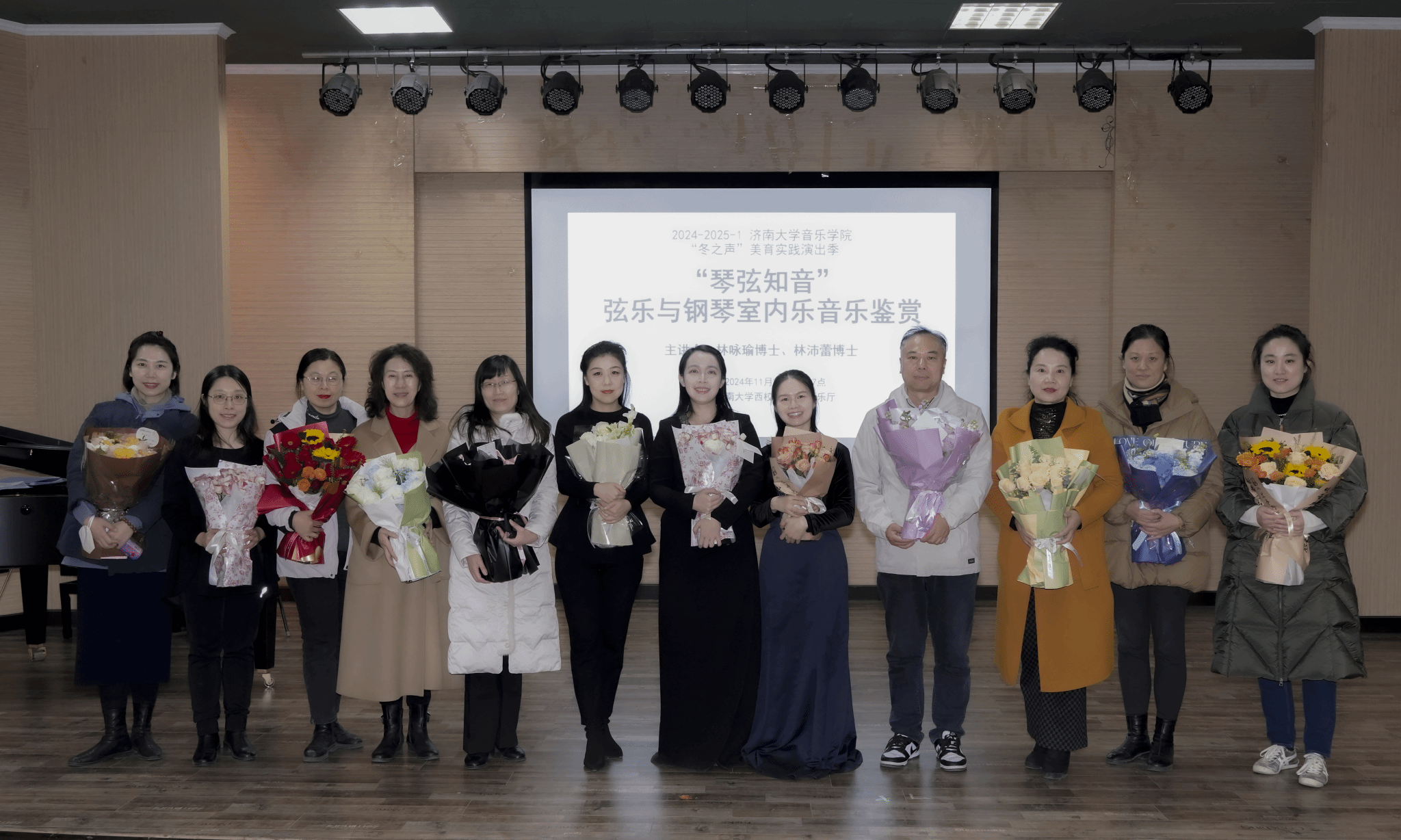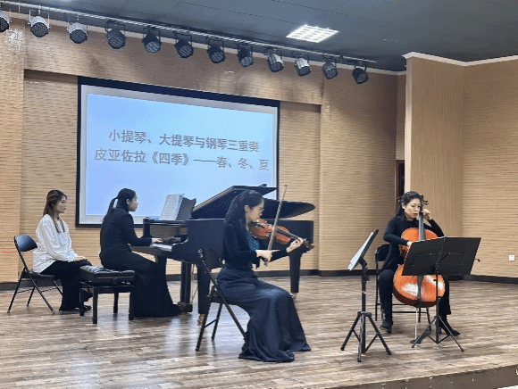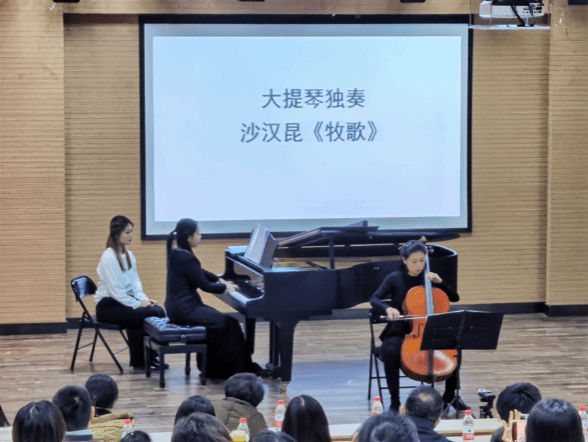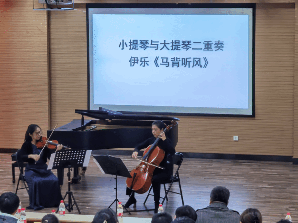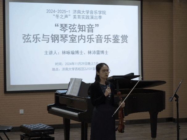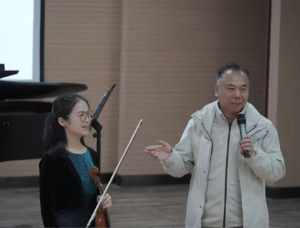 11月29日晚7点,太阳成集团tyc151cc“冬之声”美育实践演出季温暖续航, “琴弦知音”——弦乐与钢琴室内乐音乐鉴赏在太阳成集团tyc151cc西校区2J101音乐厅顺利举行。音乐会意在美育实践为主题,建构艺术审美,通过审美感知,形成审美感受,涵养美丽心灵。学校党委常委、统战部徐庆国莅临现场,太阳成集团tyc151cc副院长王建成致开场辞,来自学校的各学院师生及室内乐爱好者百余人一同聆听了这场温暖的音乐会。