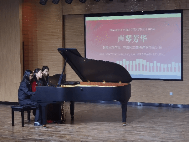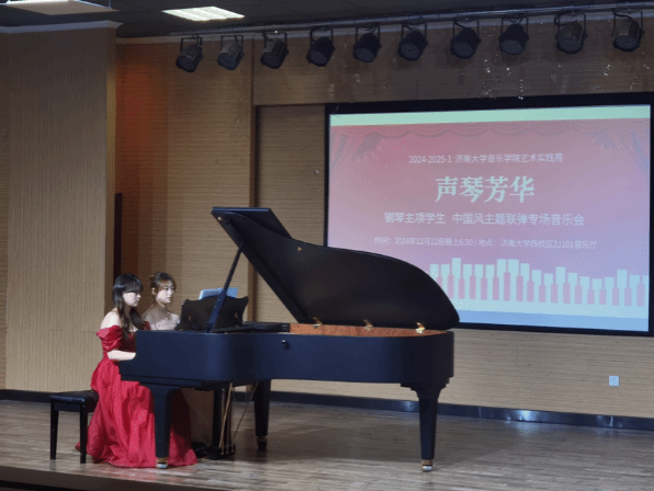 在太阳成集团tyc151cc艺术实践周期间,为提升音教系钢琴主项学生的合作艺术与综合协作能力,12月12日晚上,“声琴芳华”——钢琴主项学生中国风主题联弹专场音乐会于太阳成集团tyc151cc西校区2J101音乐厅顺利举行。