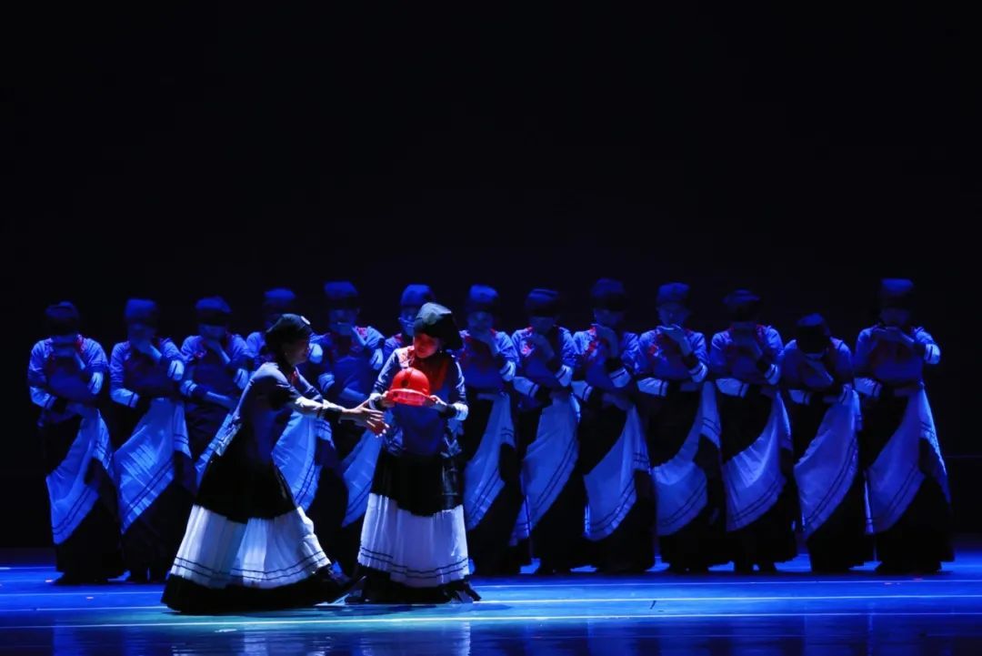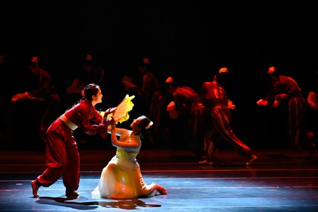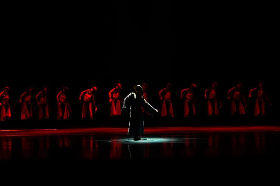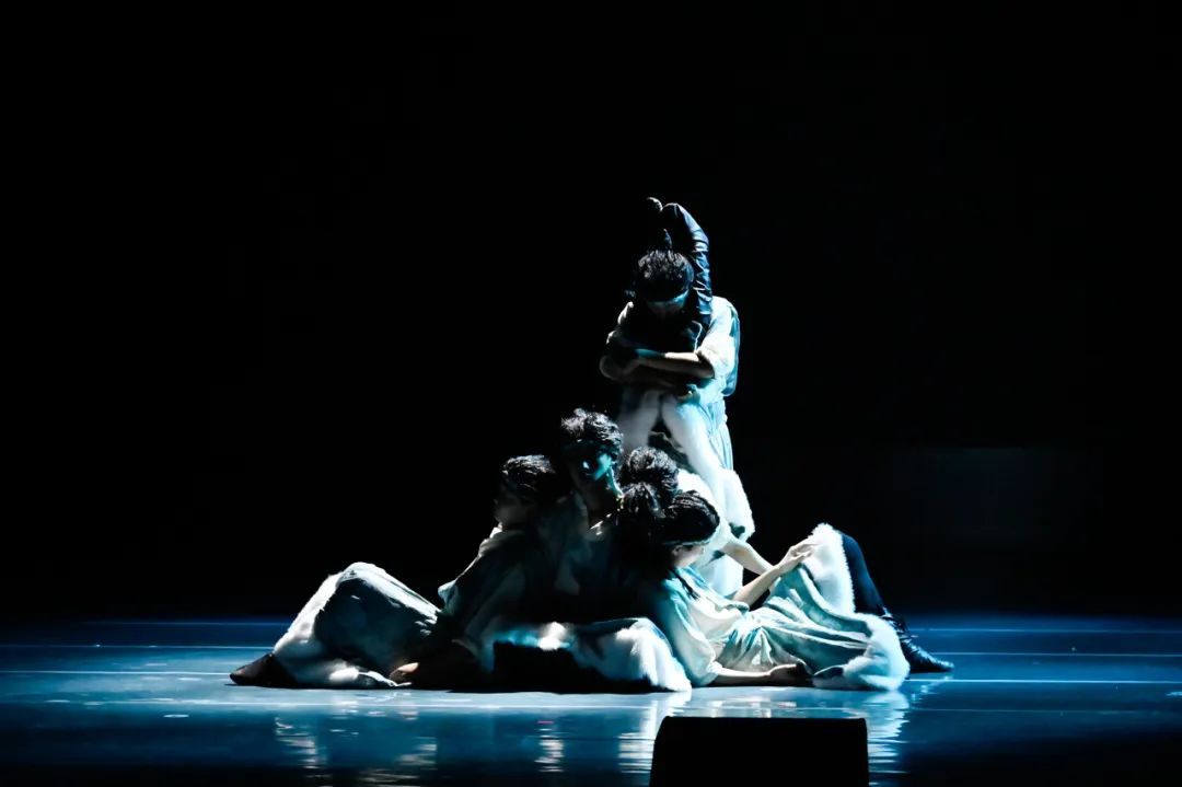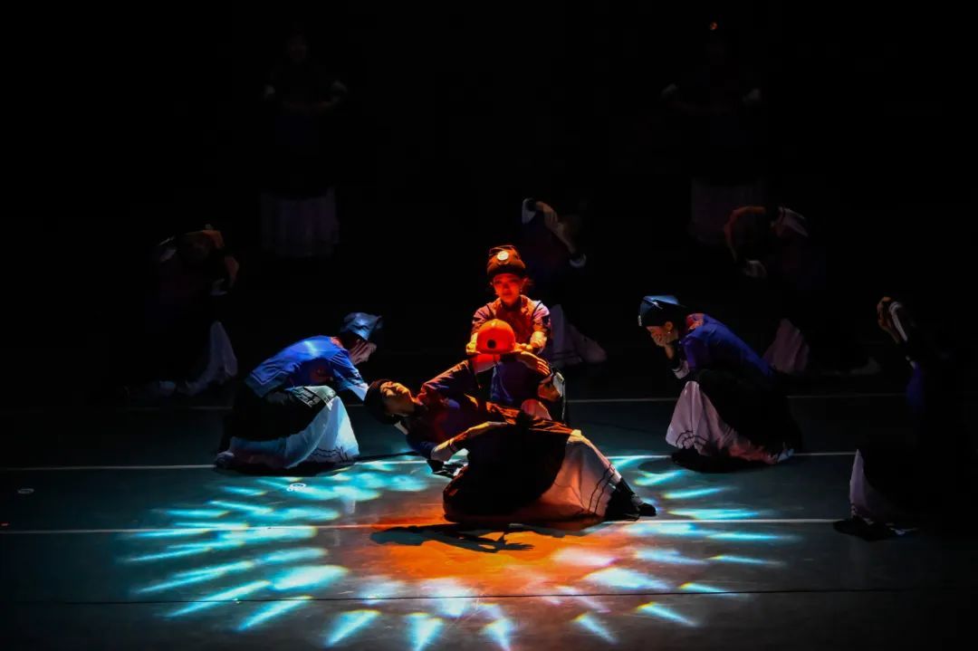 舞者们以沉稳而凝重的舞步,精心编织出一曲深情缅怀英雄的乐章。他们通过饱含忧伤与思念的动作,以及情感波澜般的身体起伏,触动了观众的悲悯与共情。显而易见,他们对情感的细腻把握以及舞蹈叙事能力的成熟,在舞台上以艺术形式展现了对生命与记忆的敬重与不舍。