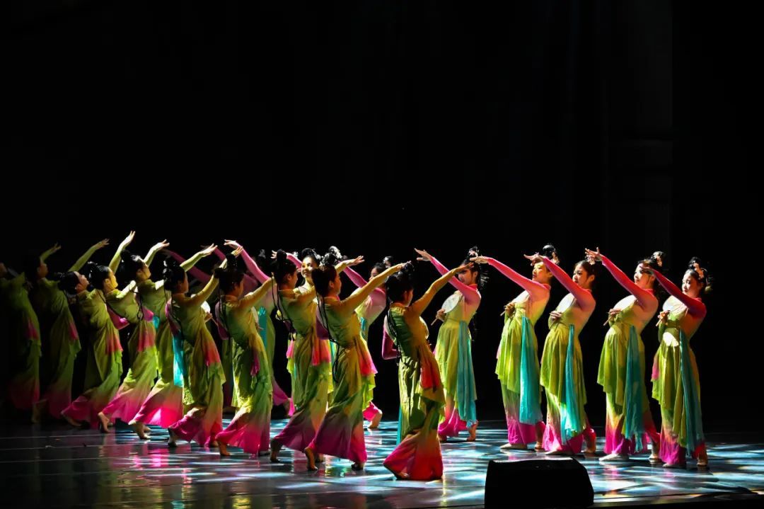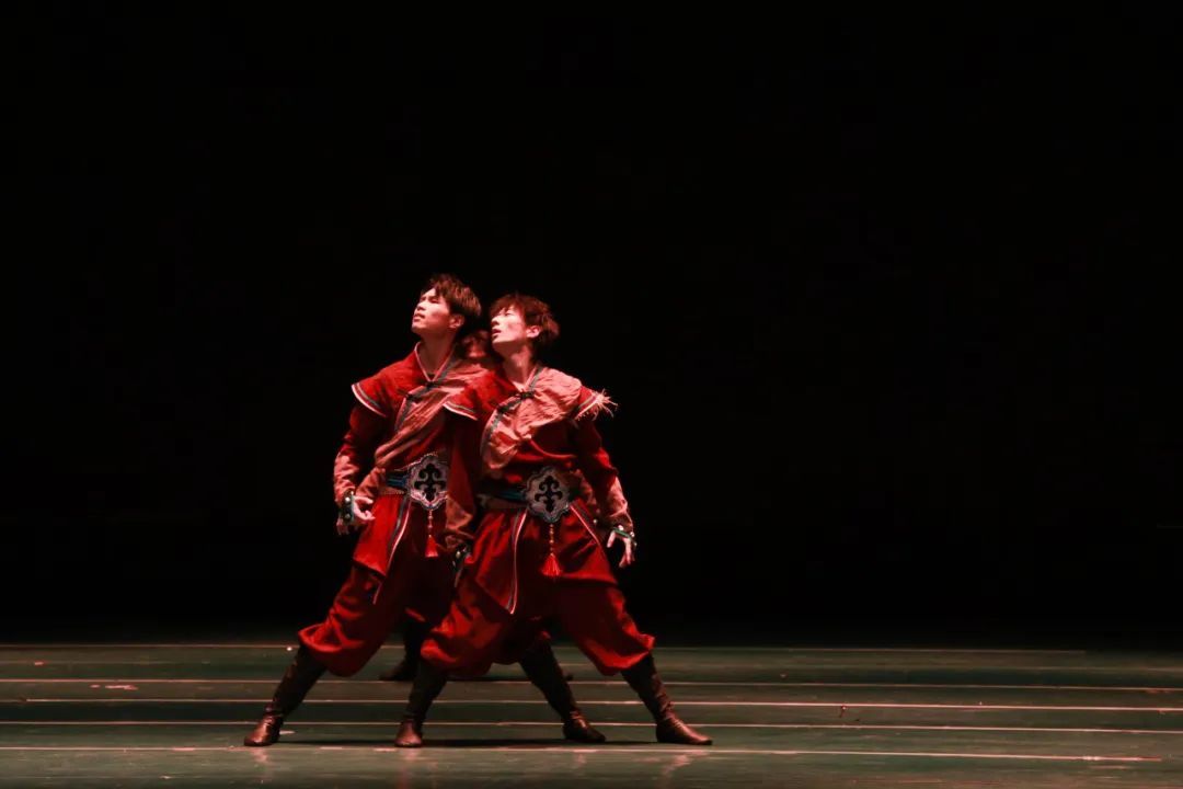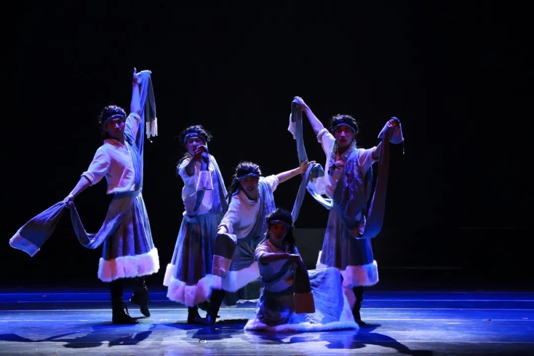 他们化身为草原上威风凛凛的狼群,身姿矫健而敏捷,气势雄浑而磅礴。以刚劲有力的动作诠释了狼的野性、团结与坚韧不拔。每一个舞步都传递着深沉而雄浑的精神力量,展现了2024级男生们塑造角色、营造氛围以及团队协作的能力,反映出学院在教学中对不同风格舞蹈的把握、团队舞蹈表现力培养等方面的成果,彰显出学生在舞台上强大的艺术感染力。