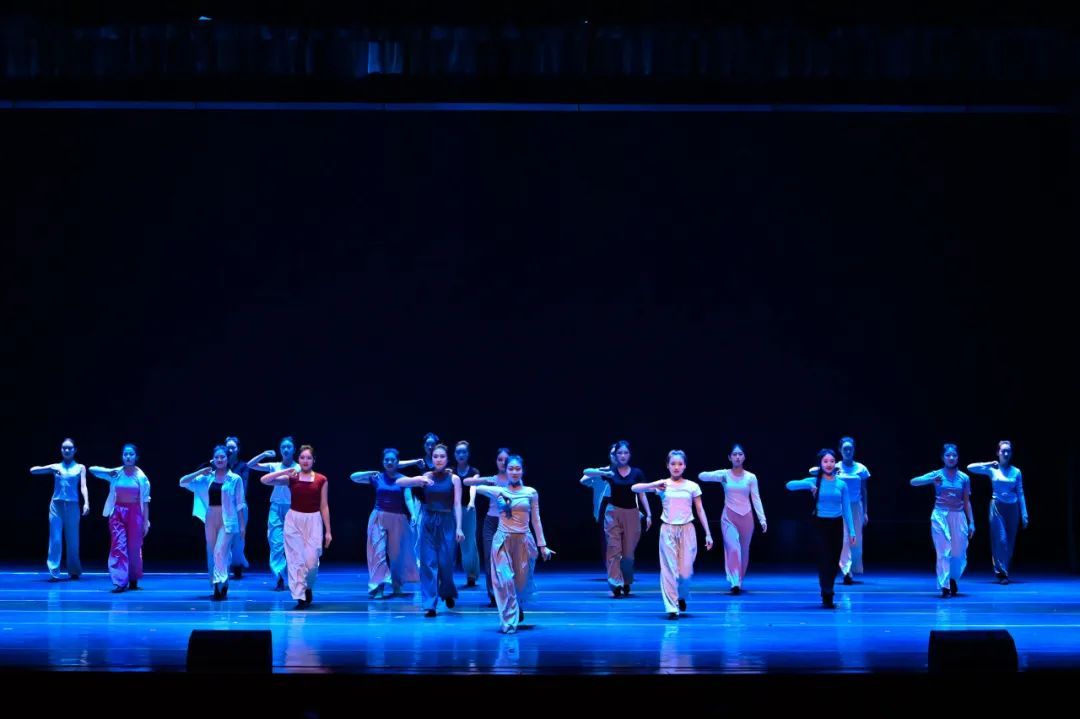 四位表演者在光影交织的舞台空间中,以舞蹈为笔、心灵为墨,绘制出令人赞叹的画面。他们的舞步与情感深度相互融合,深入观众的心灵,为观众带来了视觉与情感的双重盛宴。这展示了学院在教学中对学生综合艺术素养和情感共鸣能力培养的成果。学生们在合作表演中学会了相互配合,在舞台上展现了独特的光彩,并展示了卓越的舞台掌控力。