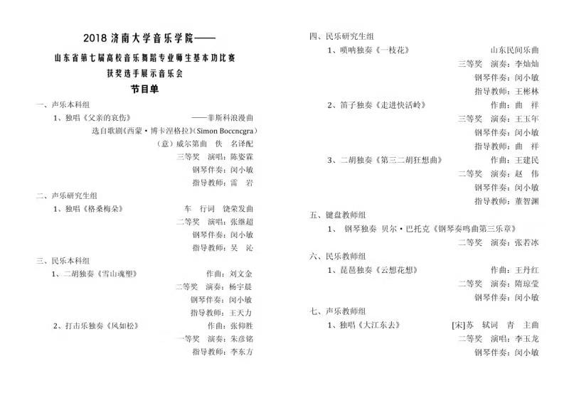 山东省第七届高校音乐舞蹈专业师生基本功大赛获奖选手展示音乐会