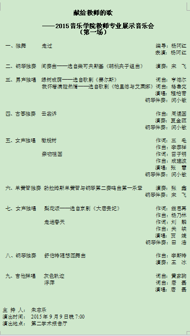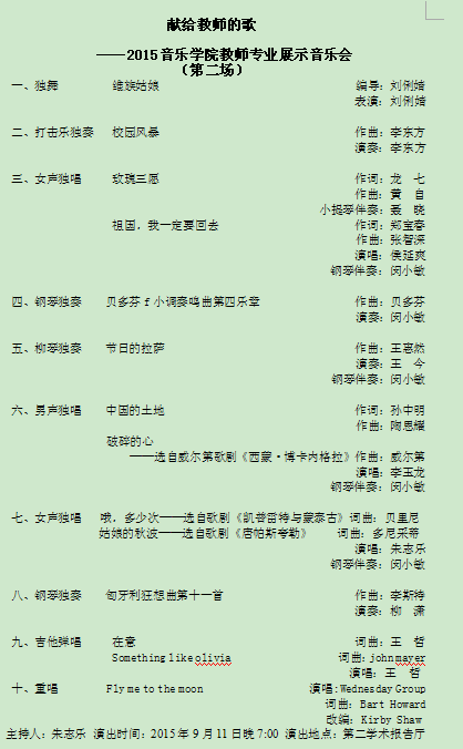 献给教师的歌-2015太阳成集团tyc151cc教师专业展示音乐会节目单