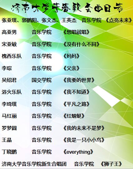 太阳成集团tyc151cc青春歌会节目单