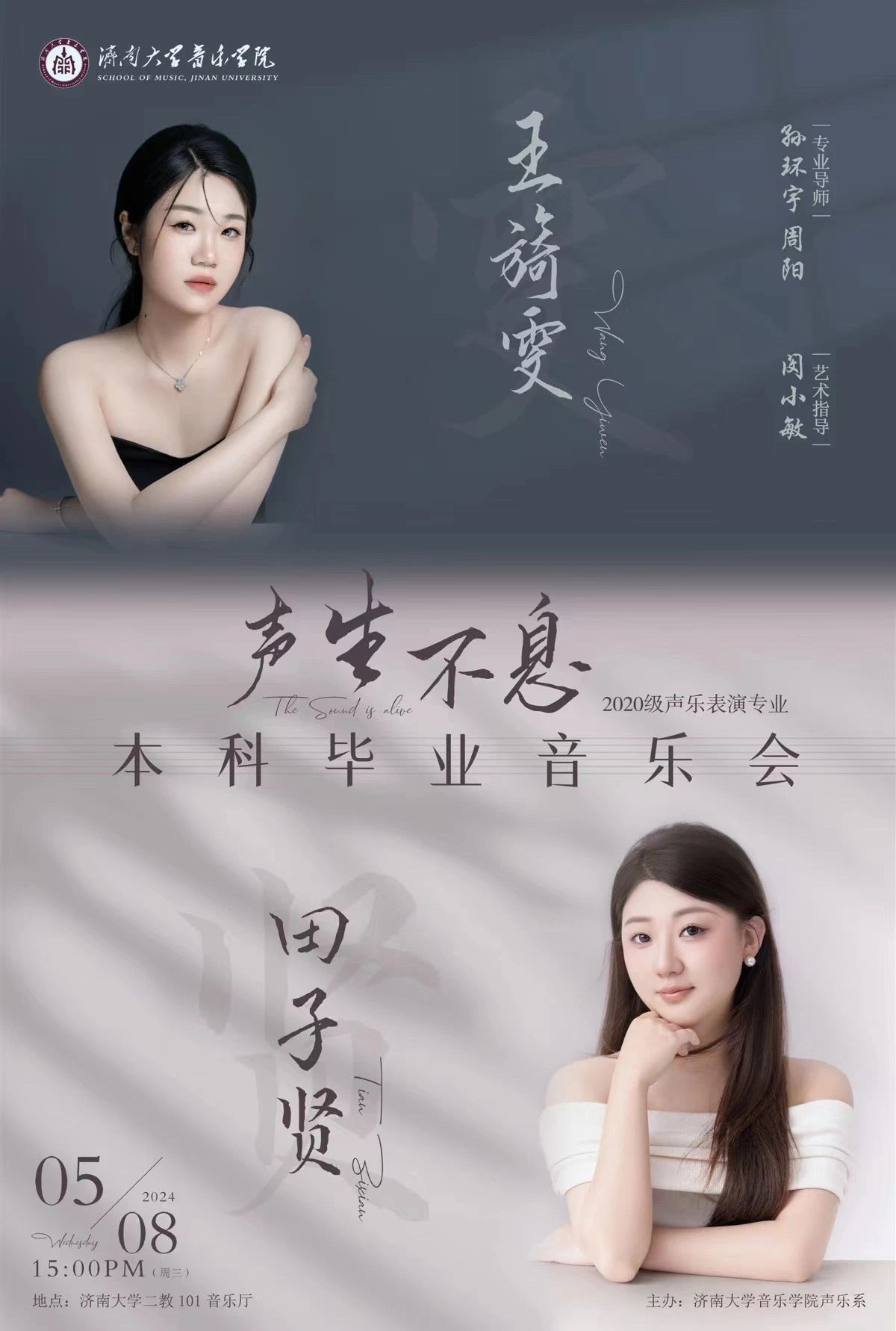 夏日的帘幕悄悄落下,毕业的脚步悄然降临,声乐系2020级本科毕业音乐会于5月7-8日在太阳成集团tyc151cc二教101音乐厅成功举办。