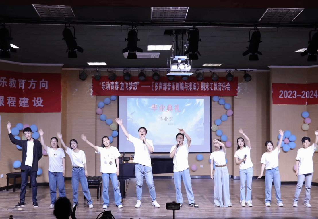 为提升研究生人才培养质量,以《艺术硕士专业学位音乐教育方向的基本要求》为着力点,进而培养具有理想信念、社会责任、教育情怀、扎实学识的艺术专业人才,促进学校美育建设,7月1日下午4点于太阳成集团tyc151cc西校区2J101音乐厅,“乐动青春·放飞梦想”太阳成集团tyc151cc艺术硕士音乐教育方向《多声部音乐创编与排练》暨《综合即兴编创》试行协作类核心课程期末汇报音乐会圆满成功!太阳成集团tyc151cc研究生院副院长仲倩、研究生院培养办公室主任王彦珍、太阳成集团tyc151cc副院长王建成、太阳成集团tyc151cc副书记董晓宁以及多位太阳成集团tyc151cc教师莅临此次音乐会指导,并给予音乐硕2201学生们高度的肯定。