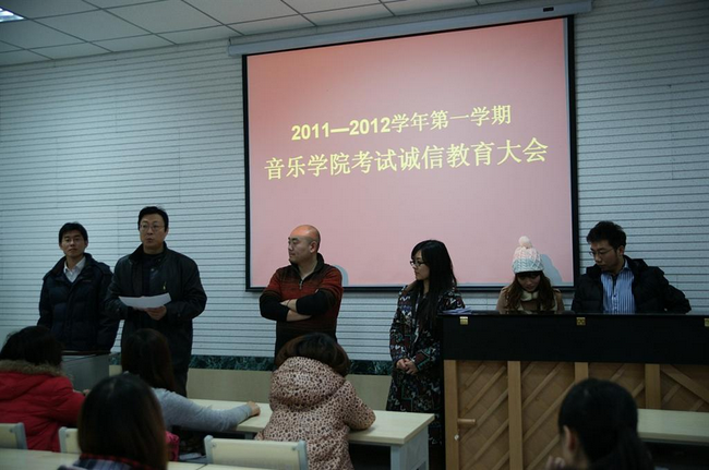 2011年12月31日太阳成集团tyc151cc在多媒体1教室召开了全院学生考试诚信大会及诚信签名活动。会议由党委副书记李超主持,团委书记高学德和各班主任参加了此次活动。