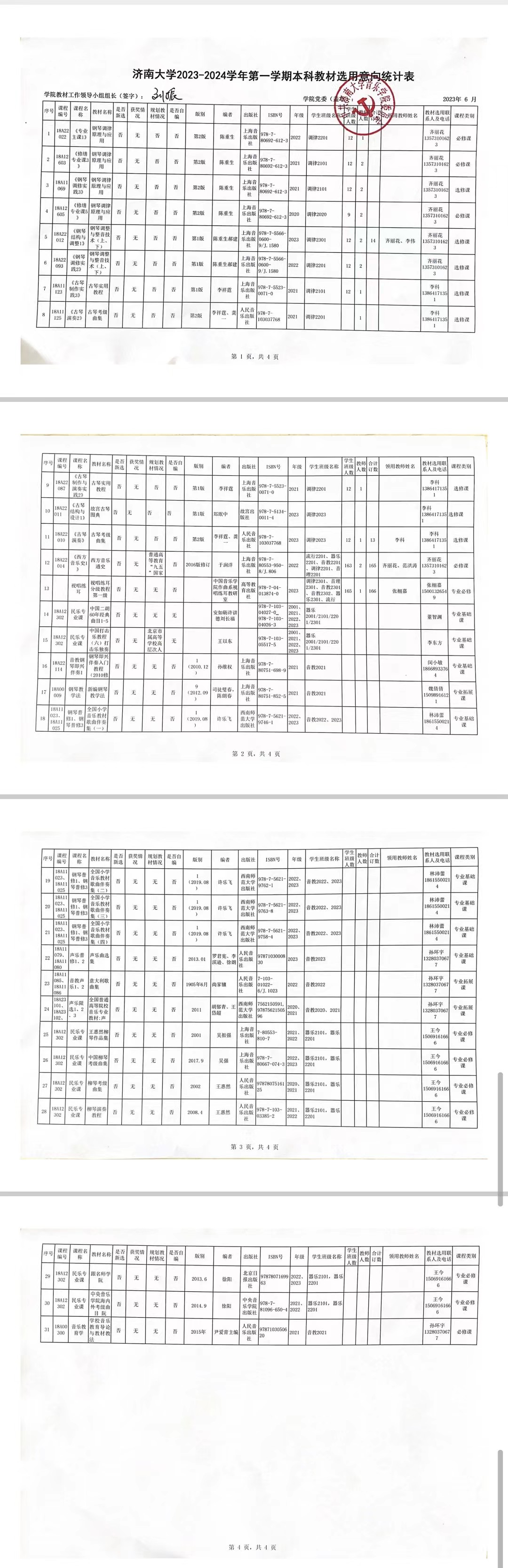太阳成集团tyc151cc2023-2024学年第一学期本科教材选用意向统计表公示