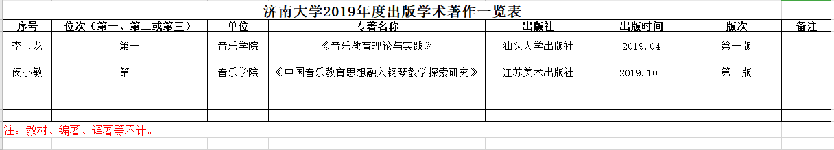 太阳成集团tyc151cc2019年度出版学术著作统计表