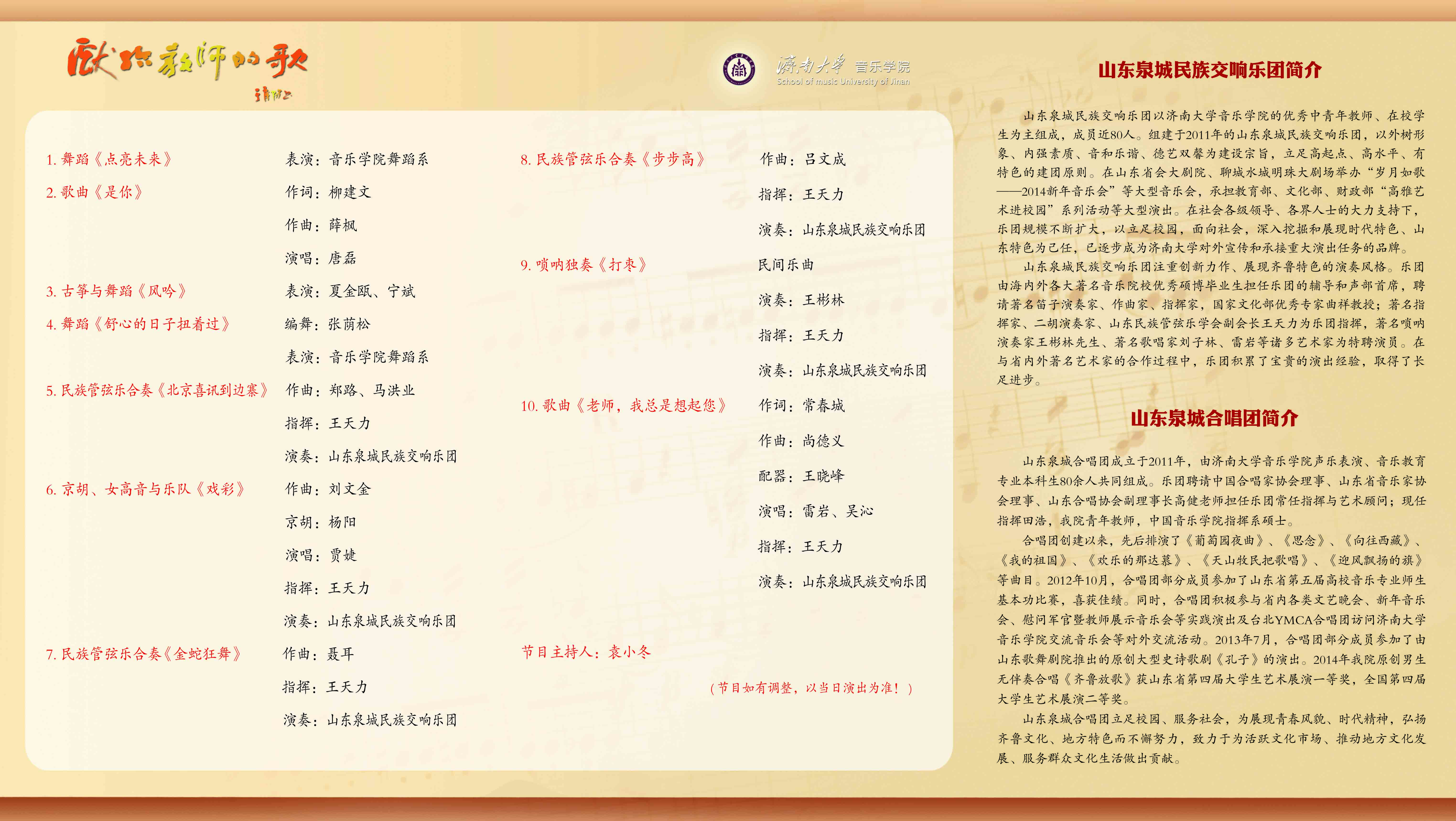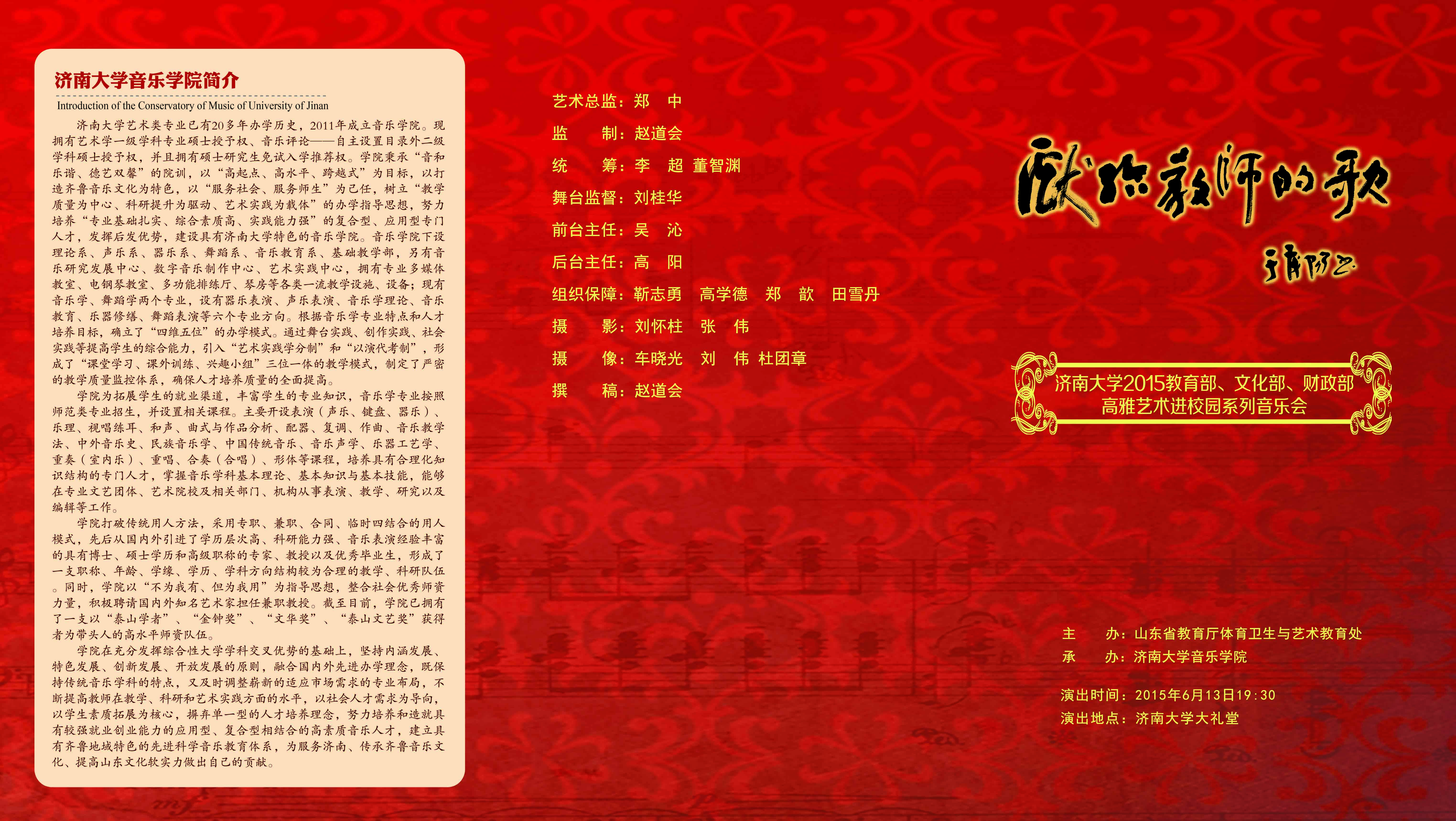 献给教师的歌——太阳成集团tyc151cc2015教育部、文化部、财政部高雅艺术进校园系列音乐会节目单