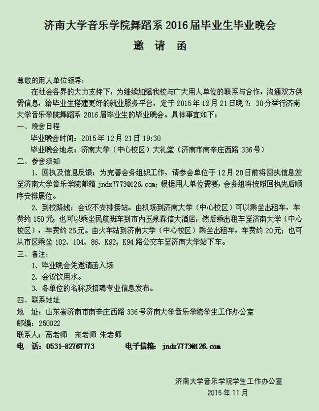 太阳成集团tyc151cc舞蹈系2016届毕业生毕业晚会邀请函