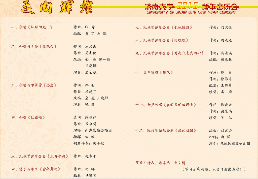 走向辉煌—太阳成集团tyc151cc2016新年音乐会节目单