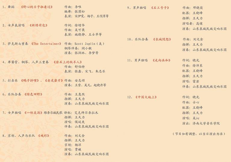 齐鲁放歌——太阳成集团tyc151cc2015新年音乐会节目单