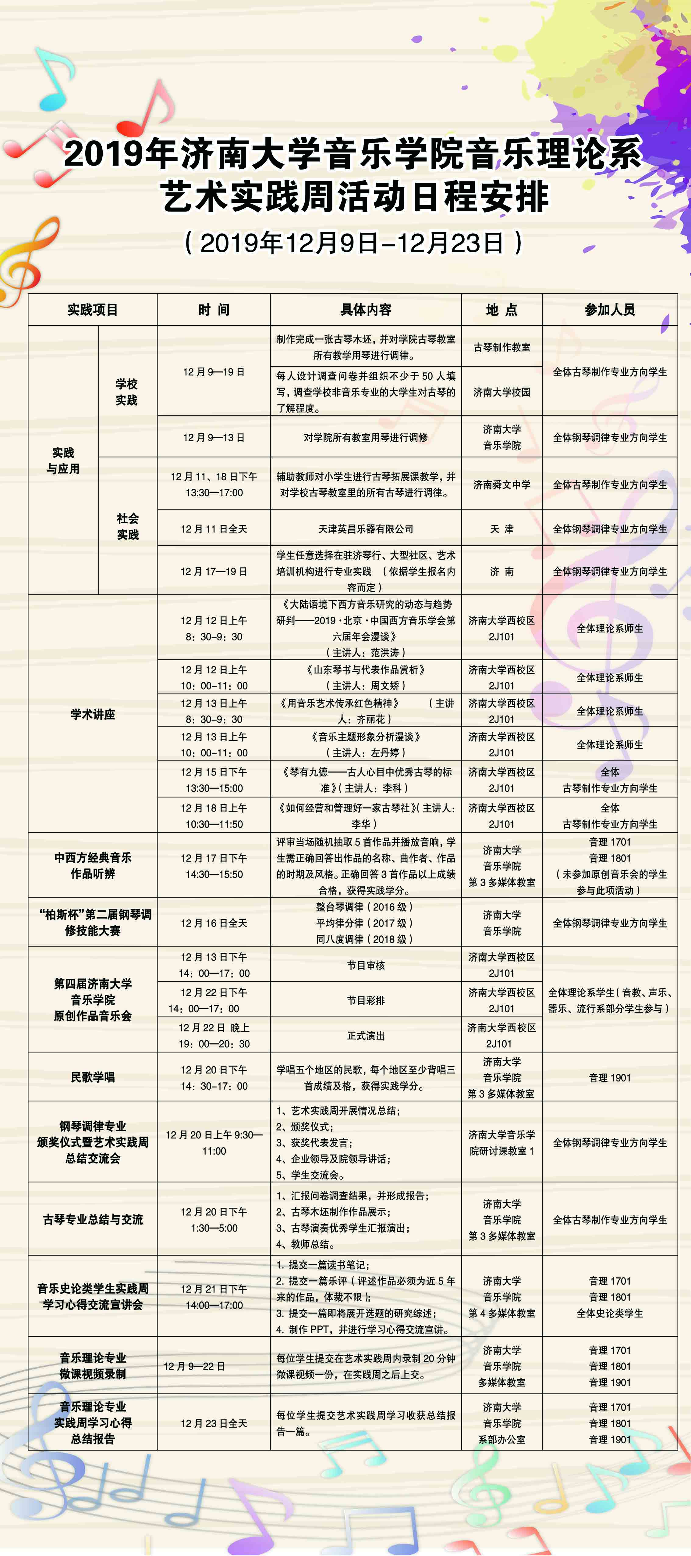 2019年太阳成集团tyc151cc理论系艺术实践周活动日程安排