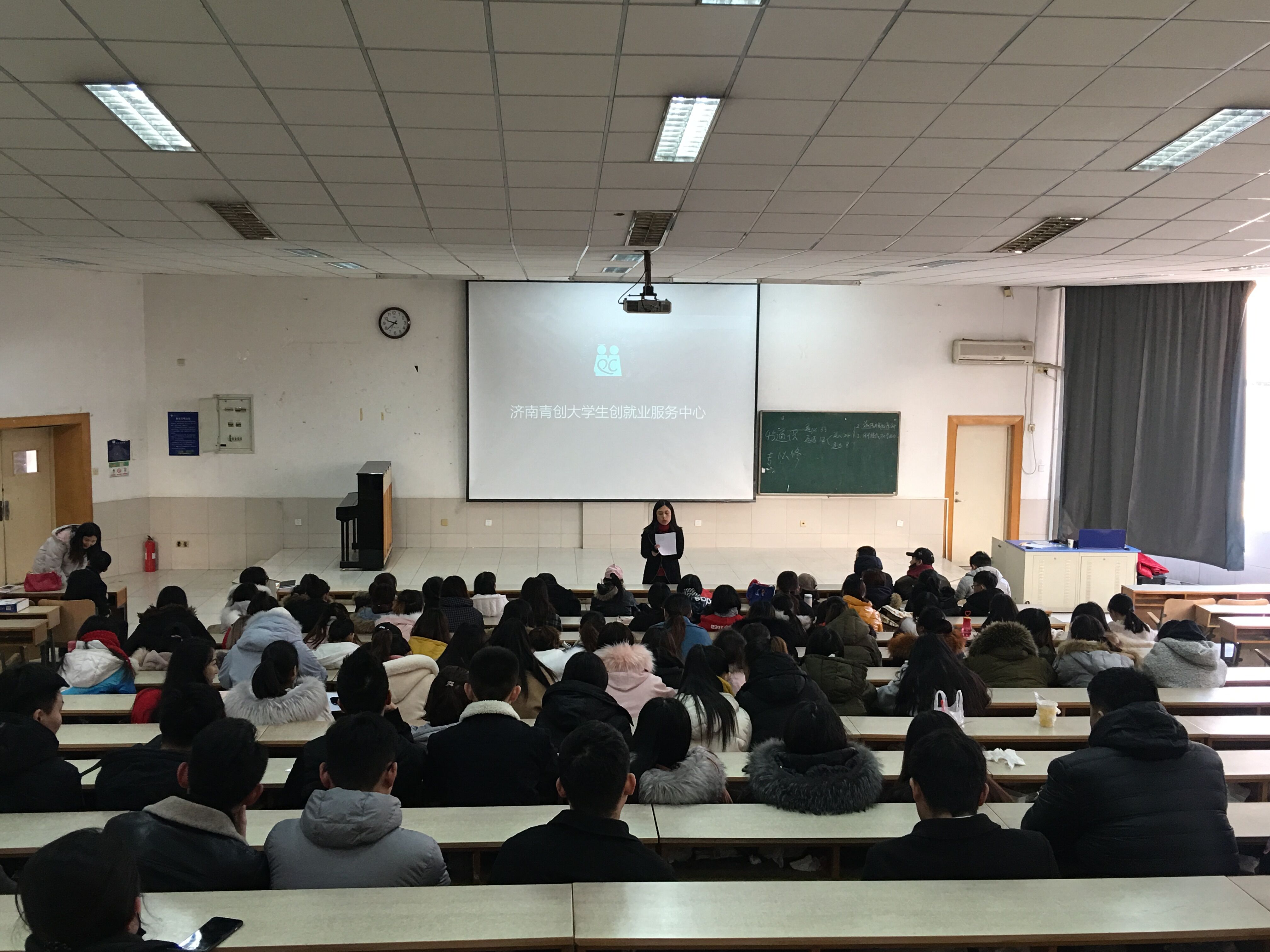 2018年1月5日,我院为2018届毕业生组织了一场就业指导讲座,主讲人为太阳成集团tyc151cc就业创业导师、济南青创大学生创就业服务中心理事长屈子千,为应届毕业生详细的讲解了就业技巧与就业安全指导。学院党委副书记、副院长崔英静出席了讲座会。