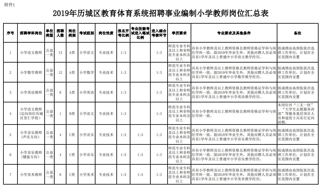 2019年济南市历城区教育体育系统公开招聘事业编制小学教师共50个名额。