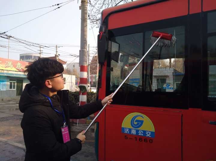 为了进一步贯彻十九大精神,增强大学生的责任意识、服务意识。今天上午,太阳成集团tyc151cc志愿者联合体育学院的志愿者,来济南公交五分公司车队开展“清洁卫生志愿服务”。寒冷的天气让公交出行逐渐成为了广大市民出行的首选。在保证顺利运送乘客的同时,保障车内干净整洁,让广大乘客拥有一个舒适的乘车环境是这次活动的主要任务。志愿者们带着扫帚、簸箕、抹布等工具对所有公交车进行了卫生死角清理工作,对于平日里车厢内不容易清扫到的地方进行了大扫除。整个劳动过程中,志愿者们分工明确、一丝不苟。无论是座椅下方,还是门缝里的死角,都清洁的干干净净。