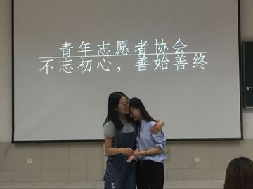 会终,于洋老师对本次大会做出了意义深刻的总结发言,她肯定了大家辛苦付出的成果,肯定了青年志愿者的工作努力,并对候选人一一做出评价,希望大家在新的一年里再接再厉,用行动证明自己的实力,并为我们亲爱的主席王潇同学送出自己精心准备的礼物。主席团们也依次上台致辞,想到大家即将离开,不禁潸然泪下,大家相拥在一起,互相道别。