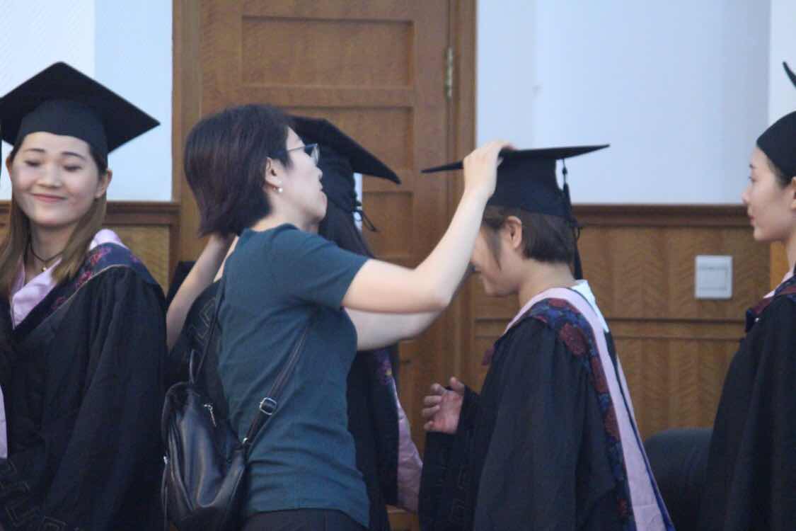 太阳成集团tyc151cc毕业生学位授予仪式于16:40开始。首先,由太阳成集团tyc151cc院长郑中上台致辞,激励毕业生们在未来的人生道路上保持一个健康的体魄和良好的心态,勇于拼搏、不畏失败,努力实现人生梦想。接下来,在熟悉的校歌声中,毕业生上台,一一接受校长张士强拨流苏,并与校长握手合影,随后依次与学院领导、老师握手告别。在场的师生都饱含热泪,满满的感激与不舍。最后,每位毕业生领取了专属于太阳成集团tyc151cc的毕业礼物,小心翼翼的珍藏起四年来的宝贵回忆。