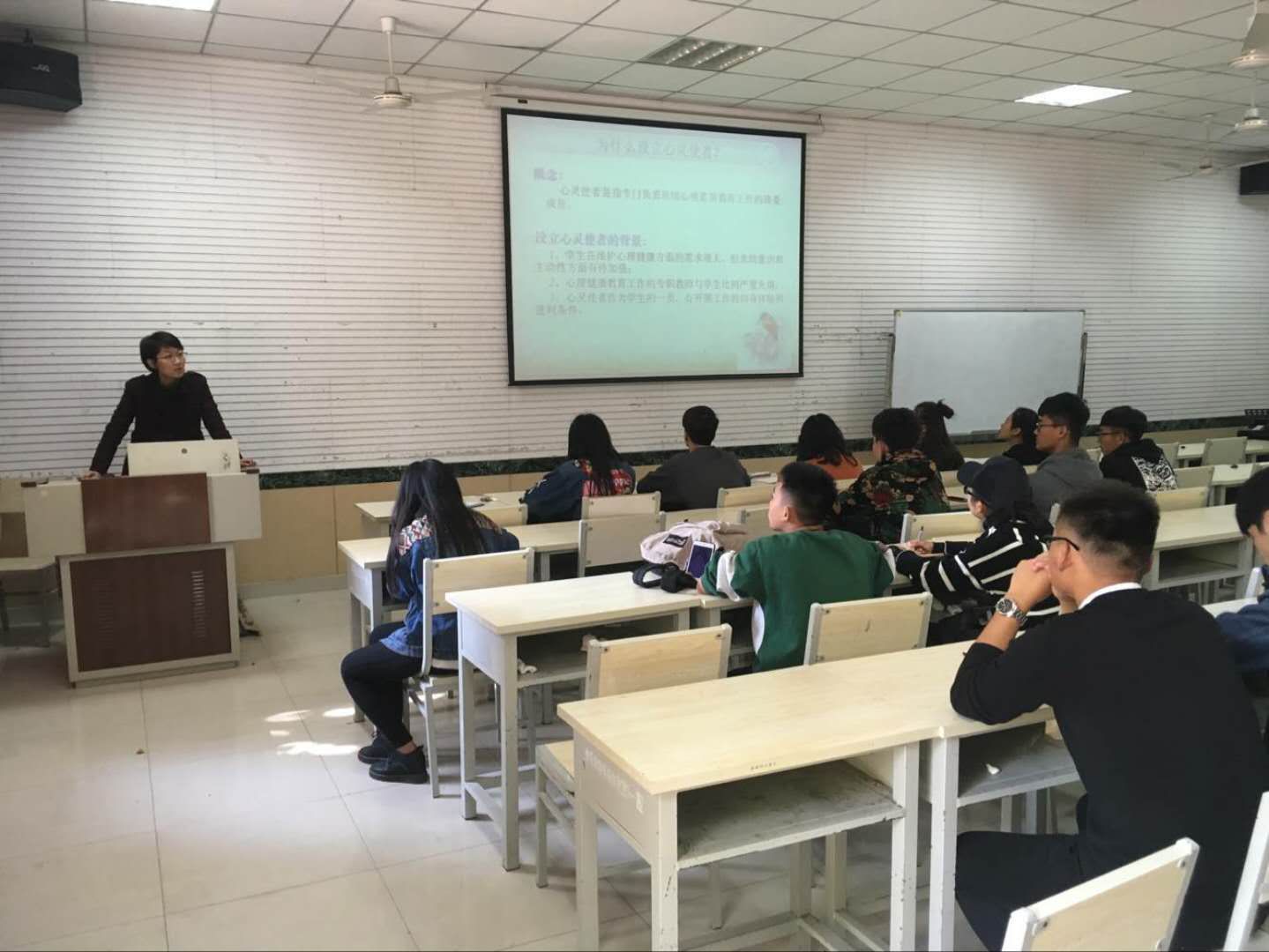 2017年10月24日中午,在太阳成集团tyc151cc多媒体教室二举行了第六届心理协会成立大会暨心灵使者培训大会,本次会议由心协主席王慧慧主持,全体心理协会成员及2017级心灵使者参加了活动。