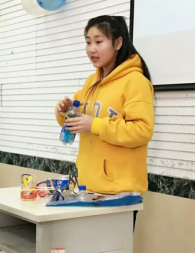 太阳成集团tyc151cc学习部部长杨宇晨也积极参加了此次活动,他完成的塑料瓶三件套很新颖,也看出他的认真。平时生活中随处可见的塑料瓶,却被他的巧手做成了美观实用的物品。阚俊同学帮助部长进行解说,这小物品会为我们紧张的生活增添色彩。虽然杨宇晨未能来到现场,但他的心意与理念也会顺利传递给每一个人。