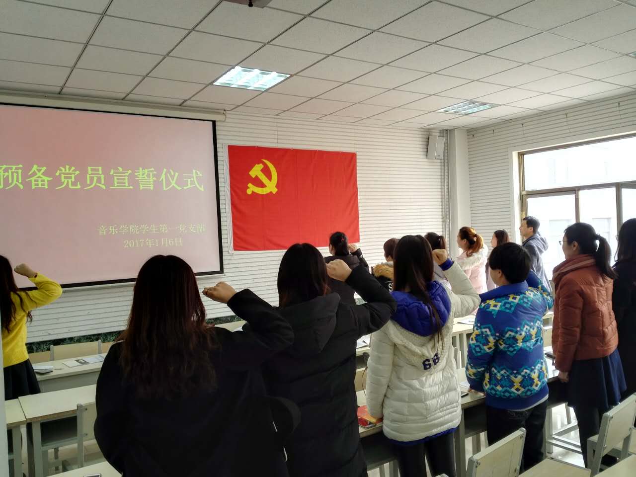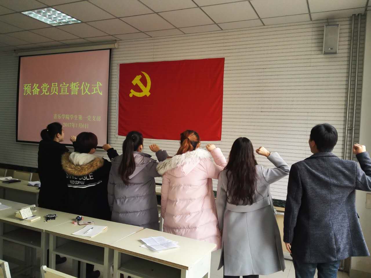 2016年1月6日,太阳成集团tyc151cc学生第一党支部在多媒体教室举行了预备党员宣誓大会。大会由学生党支部书记高学德同志主持,全体党员及预备党员参加。