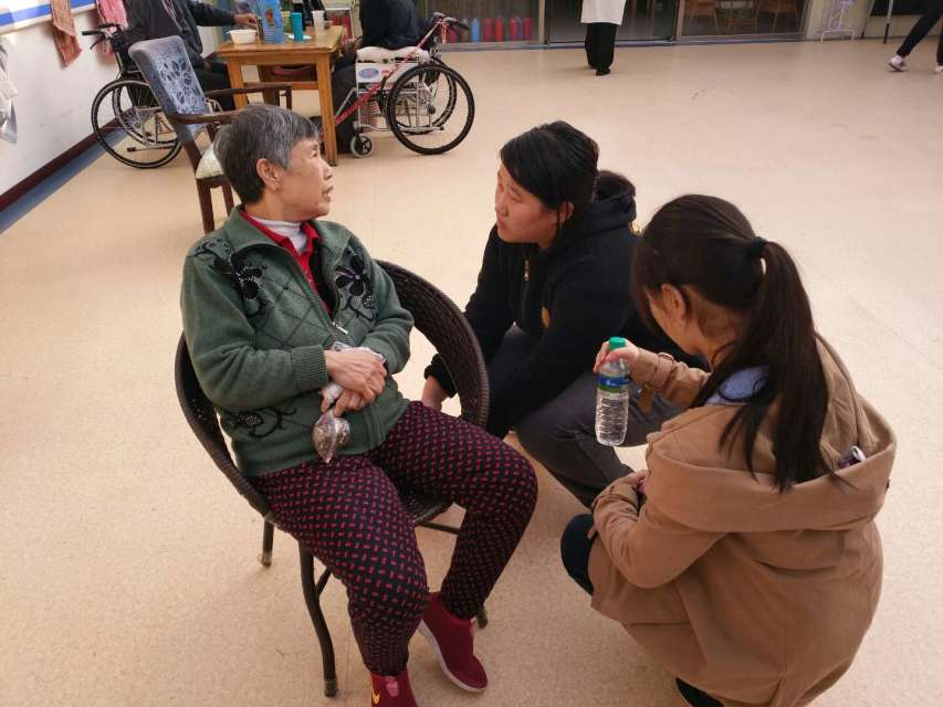 这次到敬老院参加志愿服务,之前同学们都做了充足的准备,节目排练了一遍又一遍,思考应该怎样和老人相处。到了敬老院,老人们正在大厅里透过顶上的透明玻璃晒着太阳。看到我们的到来,老人们十分开心,脸上都洋溢着笑容。第一次来的小伙伴们还有些不知所措,但是在已经来过的学姐学长们鼓励下,大家也都开始慢慢走上前去陪老人说话。没一会儿,大厅里响起了欢声笑语。