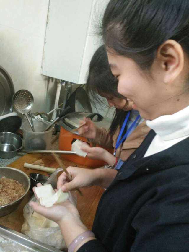 演出结束后,心灵手巧的志愿者们去了厨房给老人们包饺子。志愿者们包的每一个饺子,都代表着我们对老人的关心以及美好祝愿。而不会包饺子的小伙伴便接着去和老人们聊天。美好的时光总是感觉过的特别的快。转眼,便已临近尾声。大家依依不舍的和老人们告别。握着老人的手许诺着一定会再来看望。很多同学都留下了眼泪,一步三回头的我们离开了敬老院。