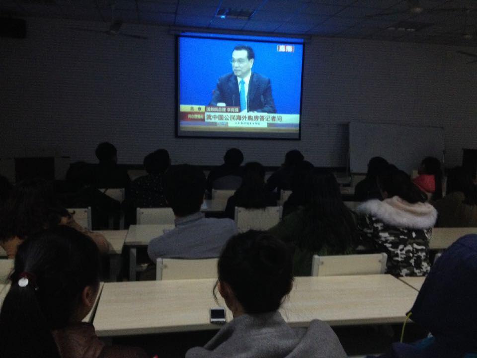 为深入学习“两会”精神,22日晚,太阳成集团tyc151cc学生会组织学生干部、团支部成员在学院多媒体教室观看“李克强总理答记者问”视频录像。