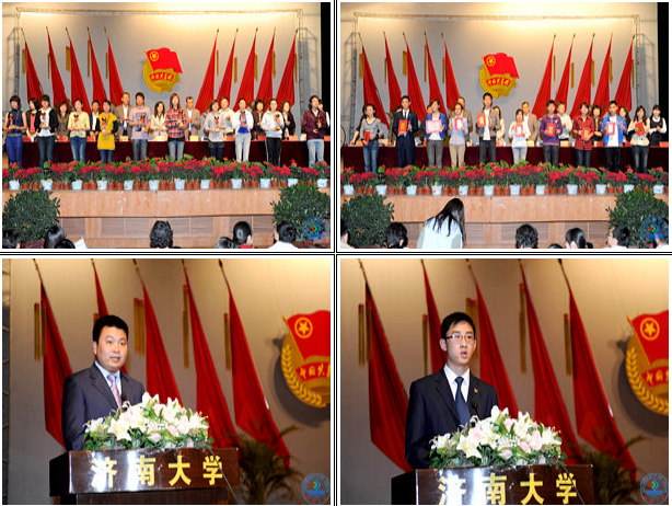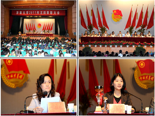 5月4日,济大礼堂花团锦簇,团旗飘扬。我校2011年“五四”表彰大会在这里隆重召开。学校党委常委、副校长张硕秋出席会议并讲话,学校办公室、组织部、宣传部、学工部、教务处、研究生处、妇委会、团委有关负责同志,各学院党委副书记,全体团干部及学校团员青年代表1000余人参加了会议。会议由校团委书记孙菲菲主持。