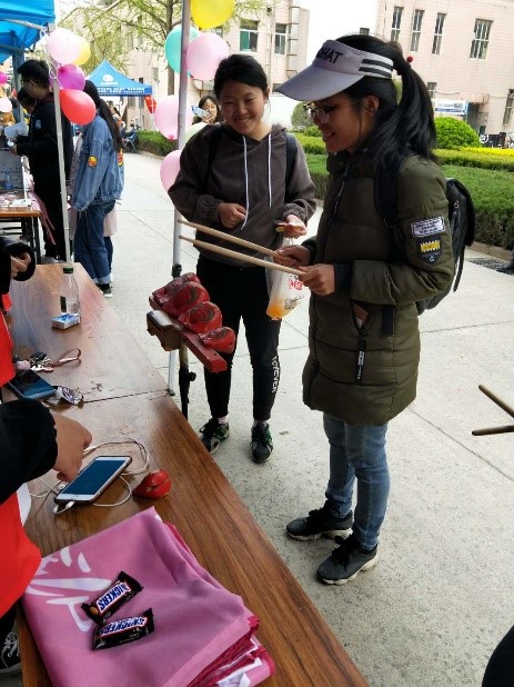此次雷锋月的主题是:暖风春意闹,雷锋踏歌来。结合我院专业特色和志愿服务方向,我院志愿者现场演奏《夜来香》,邀请有兴趣的同学亲身体验,加入其中,通过简单的教学参与歌曲的演奏。美妙的声音引来不少同学驻足欣赏。学校领导亲临现场耐心的听取我院雷锋月活动开展情况,也为下一步的志愿活动提出宝贵建议。