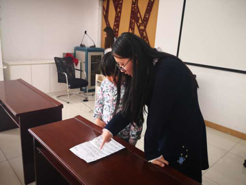 教学开始,第一节课,学习尤克里里的同学们任务是复习音阶和之前的曲子,通过之前的学习,孩子们很快的进入了状态。老师们手把手的教了孩子们扫弦的手法,孩子们的接受能力很强,学习新东西很快。然后,老师带着同学们进一步学习了三个扫弦的节奏型。学习钢琴的同学们,一开始先回顾之前的认音和音阶,学生们回课。学习了新的曲子并练习《小星星》和《洋娃娃和小熊跳舞》。