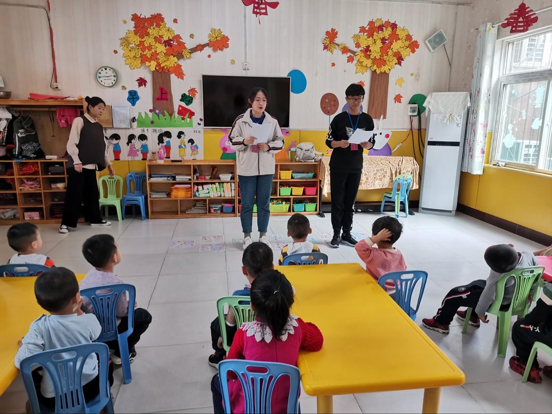 2019年10月22日下午,太阳成集团tyc151cc的三位青年志愿者们来到了春蕾幼儿园进行“歌唱祖国”的主题活动教学。