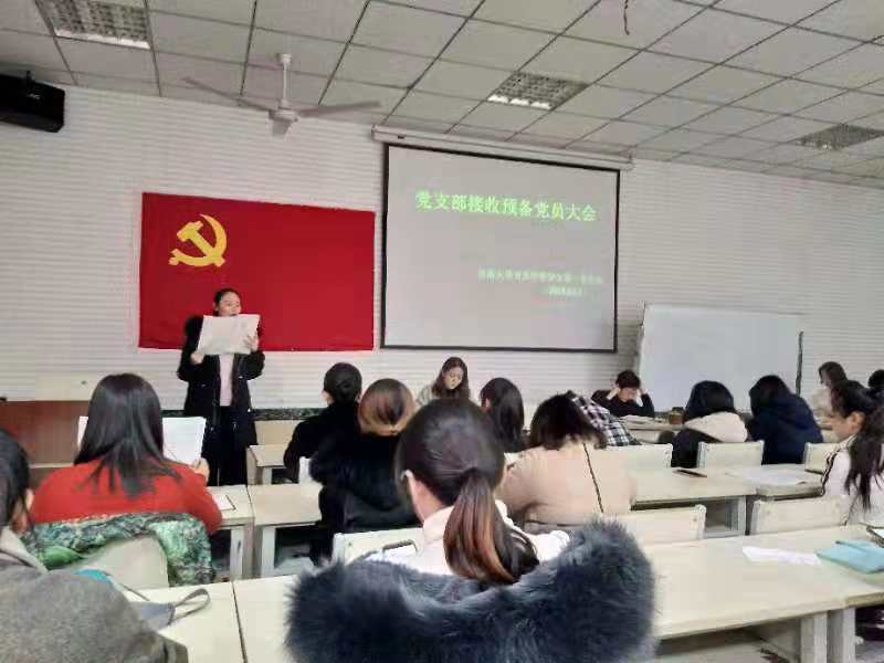 党支部书记马媛首先祝贺六名新发展党员的加入,为党组织注入了新鲜的血液。她强调新发展党员在以后的生活学习中要时时处处注意以党员的标准要求自己,不仅要从组织上入党,更要在思想上入党,在思想工作、生活学习中发挥先锋模范作用,全心全意为人民群众的事业服务。