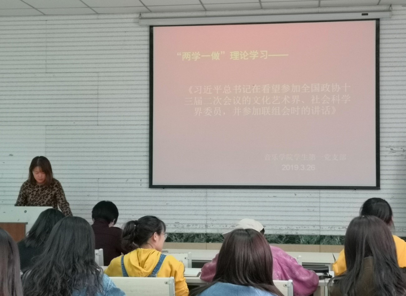 党支部书记马媛同志首先带领全体党员集体学习了《习近平总书记在看望参加全国政协十三届二次会议的文化艺术届、社会科学界委员,并参加联组会时的讲话》。