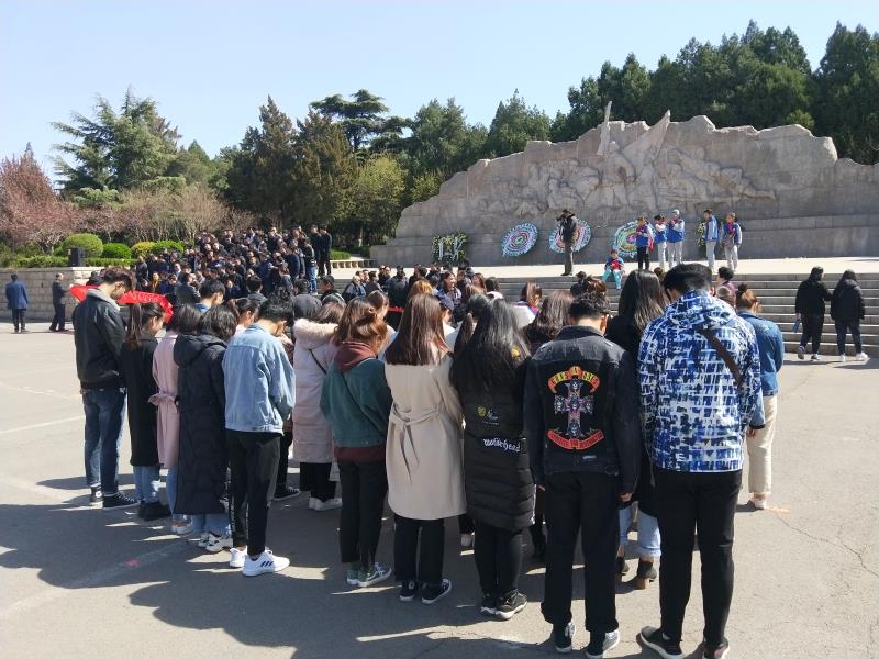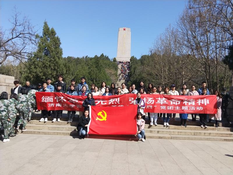 上午九点,太阳成集团tyc151cc学生第一党支部党员和优秀团员代表在太阳成集团tyc151cc新西门集合,乘坐公交车前往英雄山济南战役纪念馆。纪念馆内丰富的图片、战役作战图、烈士的遗物等都让同学们感慨良多。随后同学们走向战役纪念馆北侧的革命烈士纪念碑,并集体默哀,表达对革命先辈的尊敬和怀念。党员们在战役纪念馆前和纪念碑下与党旗合影。纪念馆和英雄碑参观结束后,大家怀着崇敬的心情前往清明广场,在革命烈士纪念群雕前举行革命先烈追悼仪式。整个过程简朴庄重、感人至深。