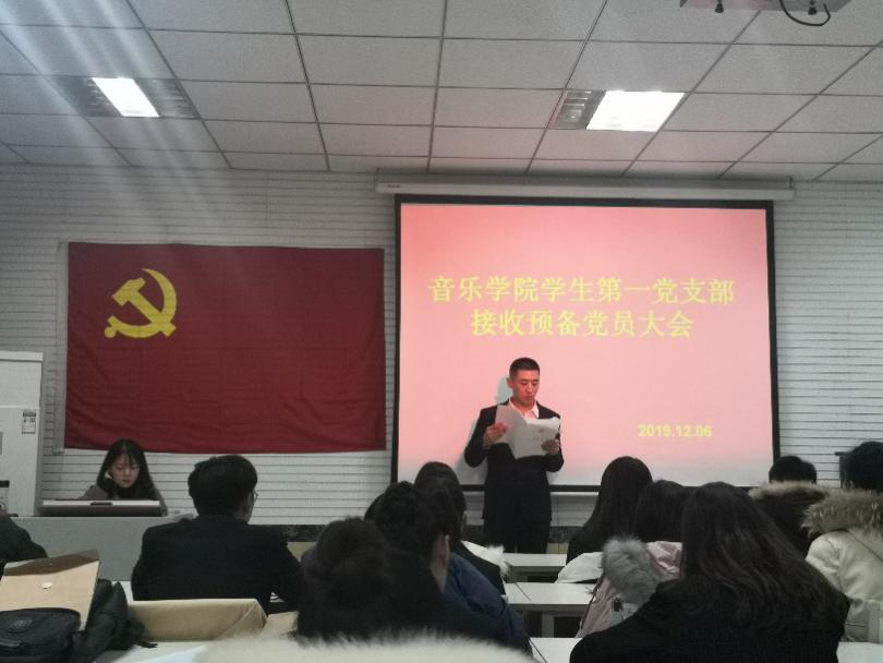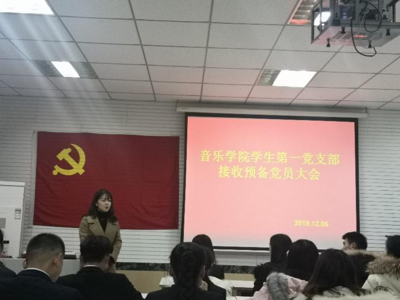 2019年12月6日下午,太阳成集团tyc151cc学生第一党支部接收预备党员大会在第四多媒体教室召开。大会讨论了于清香等18名同志的入党申请问题。本次会议由党支部书记马媛老师主持。