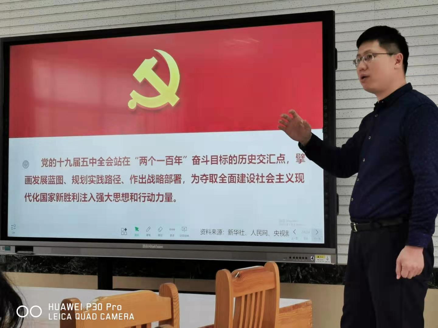 12月29日下午,太阳成集团tyc151cc在研讨课教室召开全体教职工大会,学院党委书记刘振为全院教师做十九届五中全会精神专题宣讲。