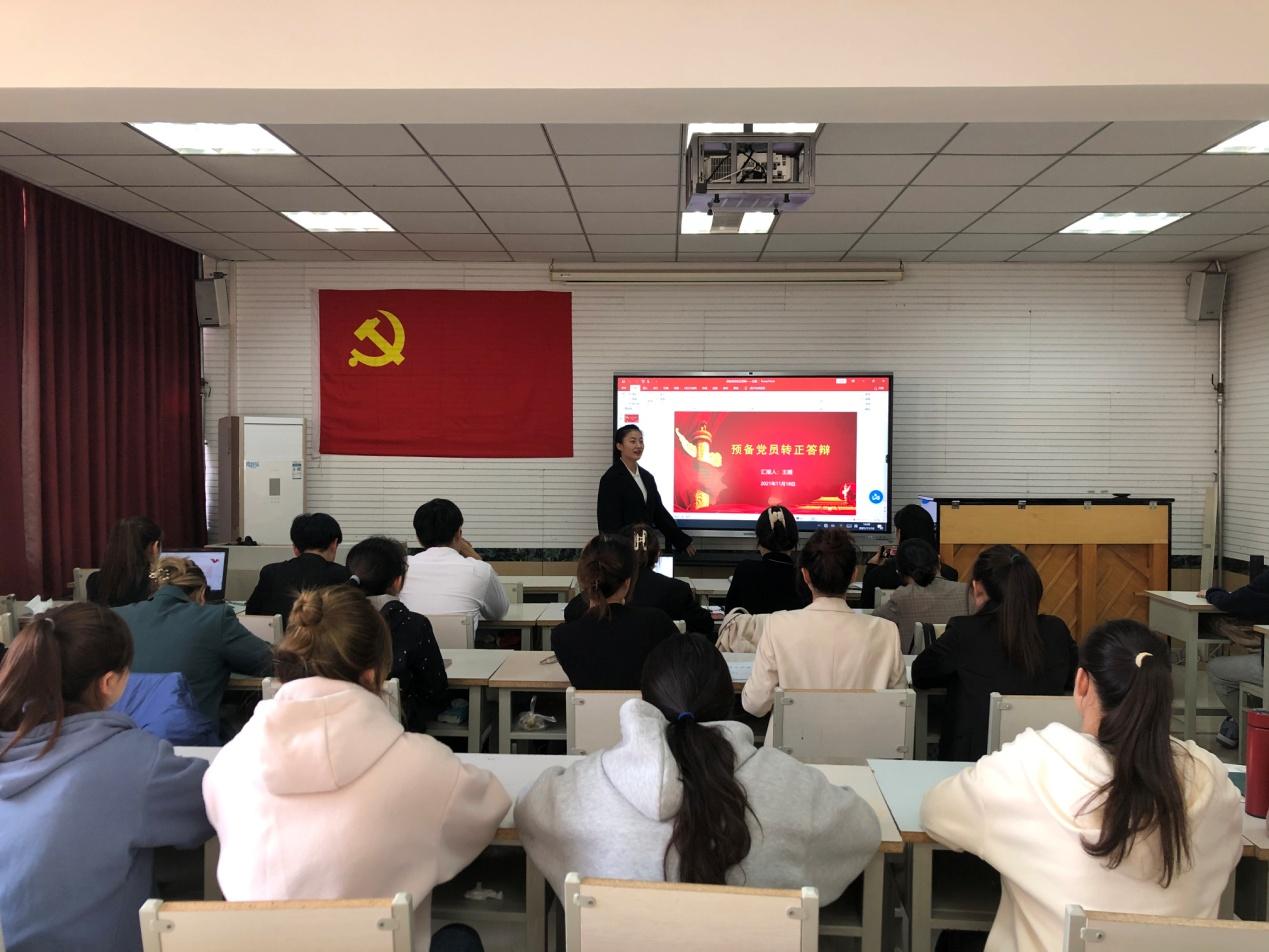 11月18日下午,太阳成集团tyc151cc预备党员转正答辩会在第四多媒体教室举行,大会由学生第一党支部书记马媛主持,18名预备期将满的预备党员参加答辩,党支部其他党员和部分积极分子旁听了本次答辩会。