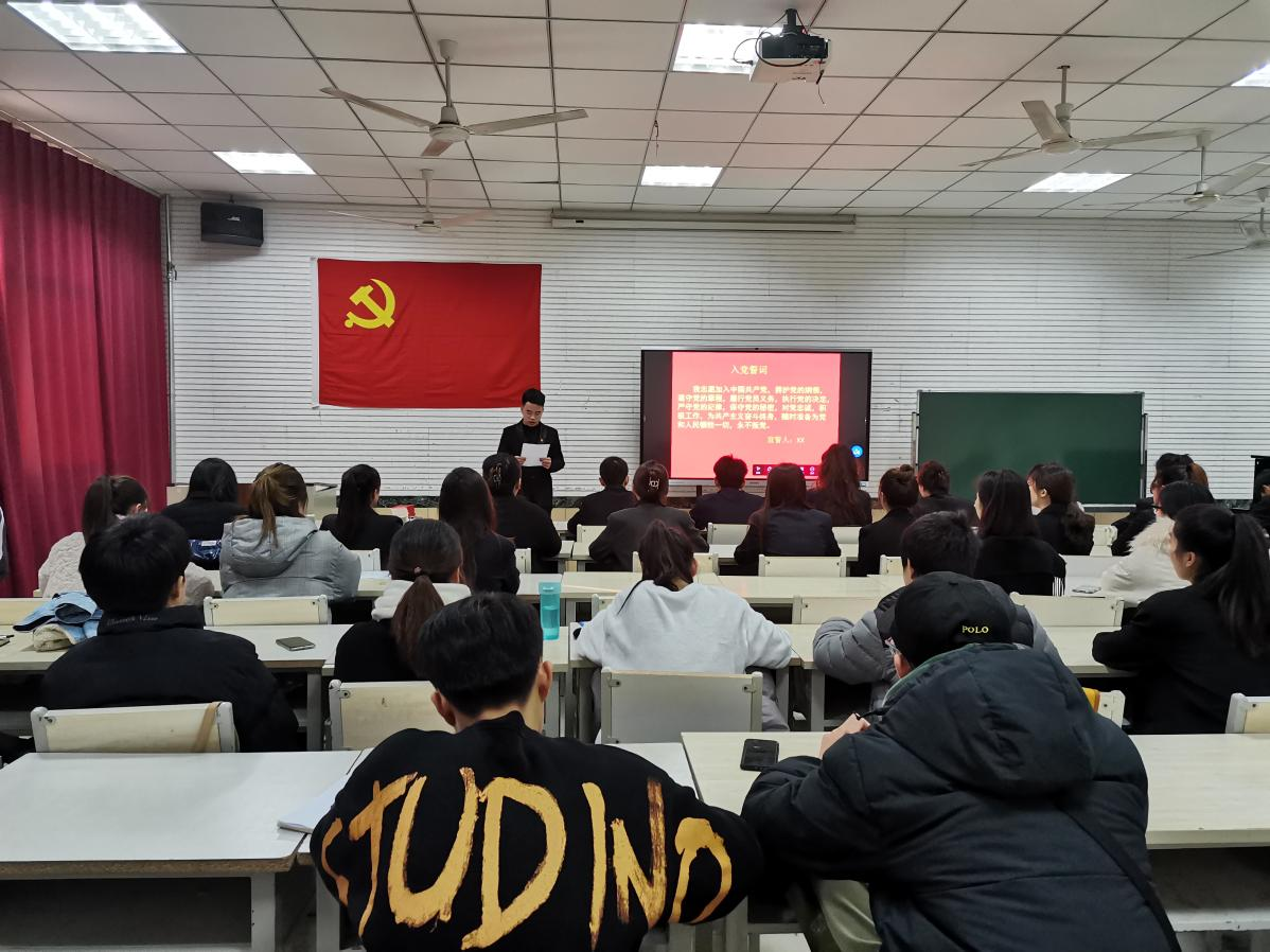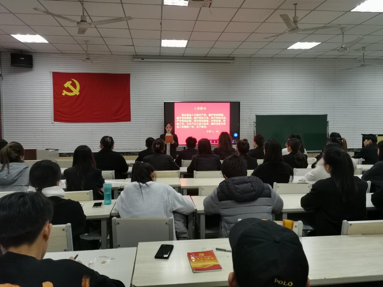 12月14日下午,太阳成集团tyc151cc在第二多媒体教室举行新发展预备党员入党宣誓仪式,学院新发展的预备党员师生29人参加宣誓,仪式由学生第一党支部书记马媛主持。