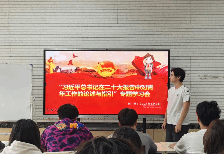 为深入学习贯彻习近平总书记在党的二十大报告中的讲话,6月3日,我院召开“习近平总书记在二十大报告中对青年工作的论述与指引”专题学习会,会议由学生代表王德计主持,学院部分团员与青年干部参会。
