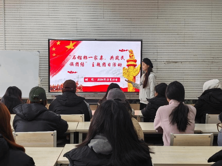 为深化我院学生对中华文化多元性与丰富性的认识,增强中华民族共同体意识,打造团结和谐的学院环境,我院于12月10日隆重举行“石榴籽一家亲,共筑民族团结情”主题团日活动。本次活动由院团支书代表程姿蓉主持,学院部分团员及青年骨干出席此次活动。